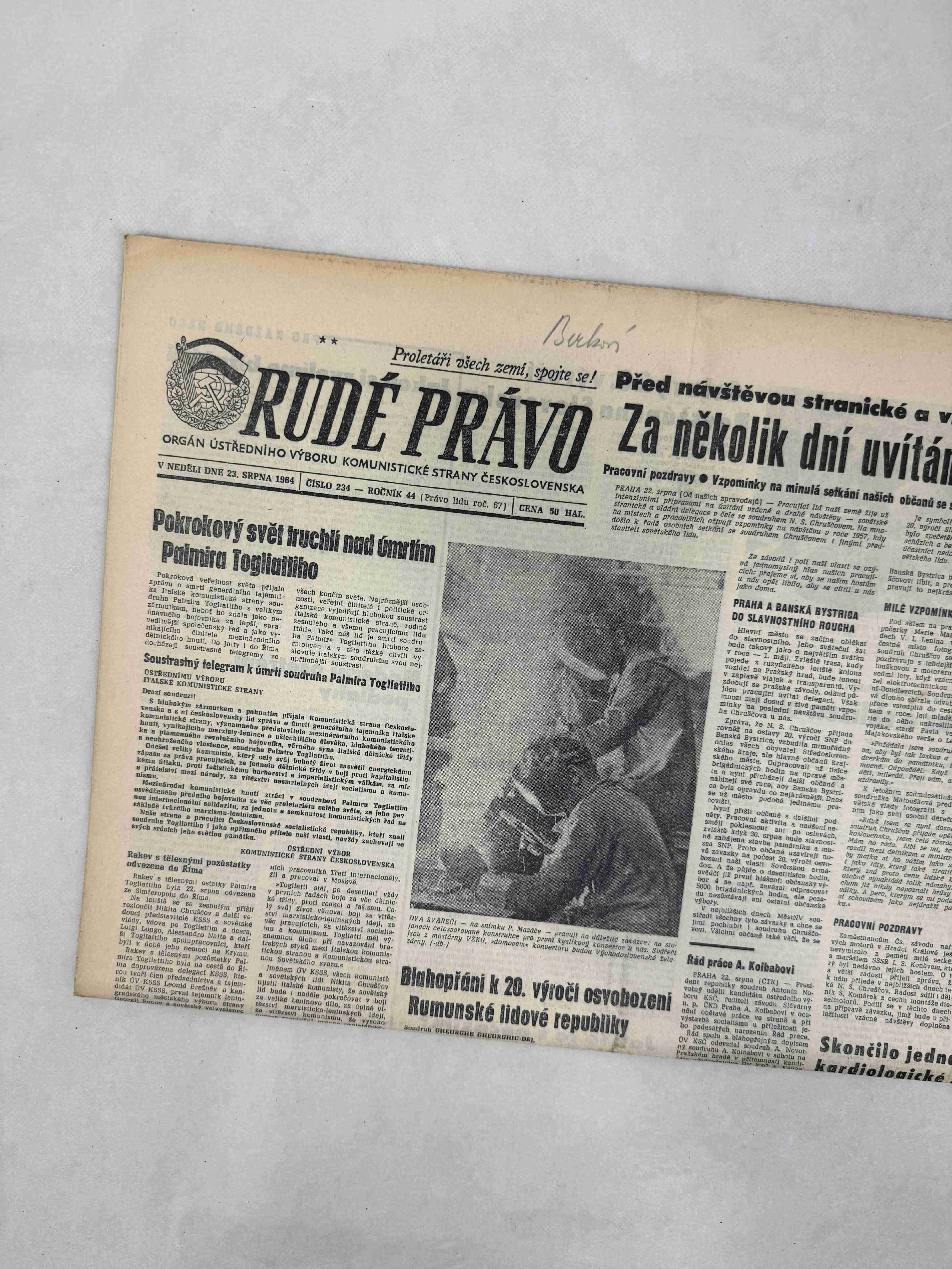 Originální dobový výtisk novin, nejedná se o reprodukci!