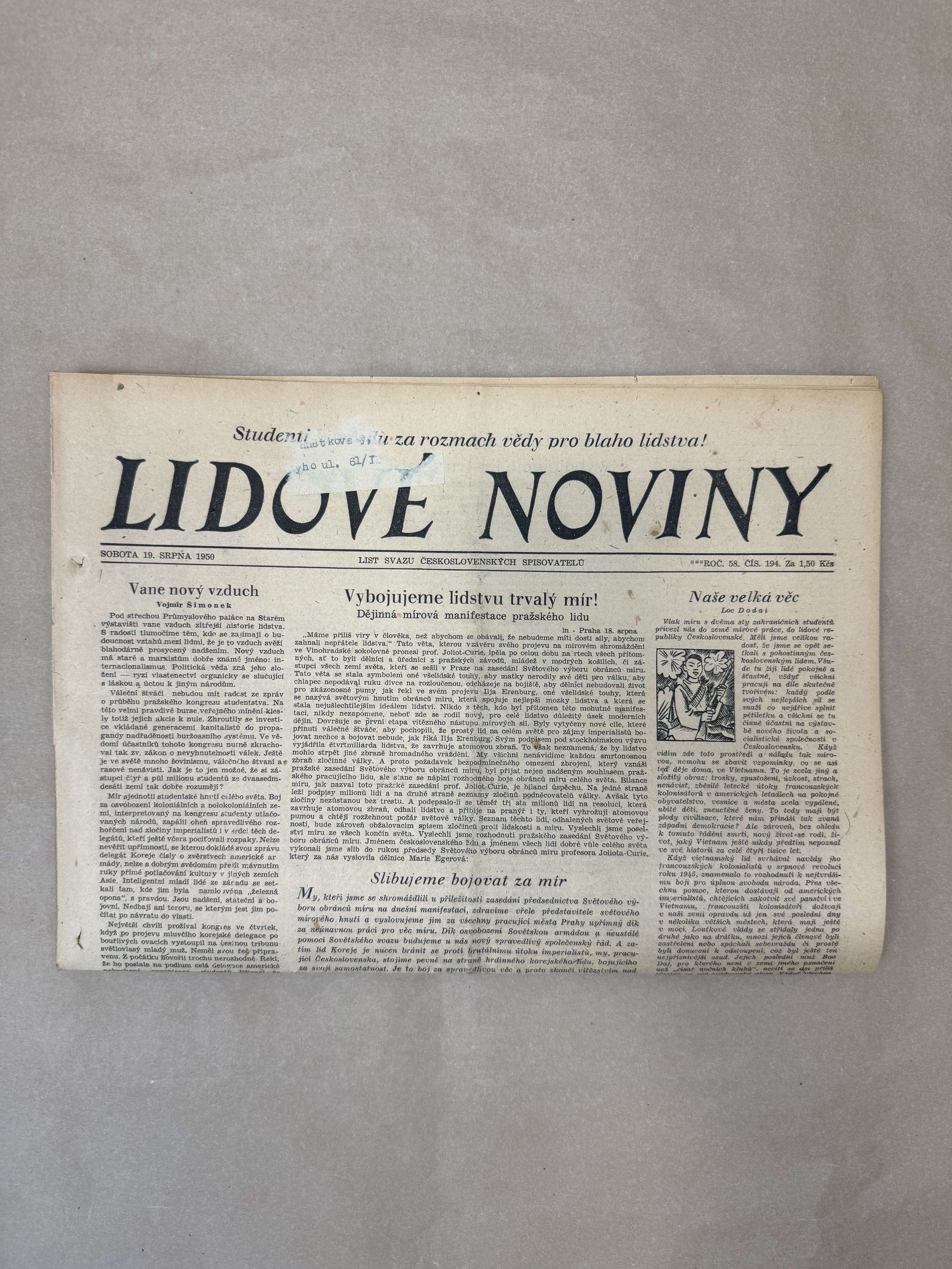 Lidové noviny 19.8.1950