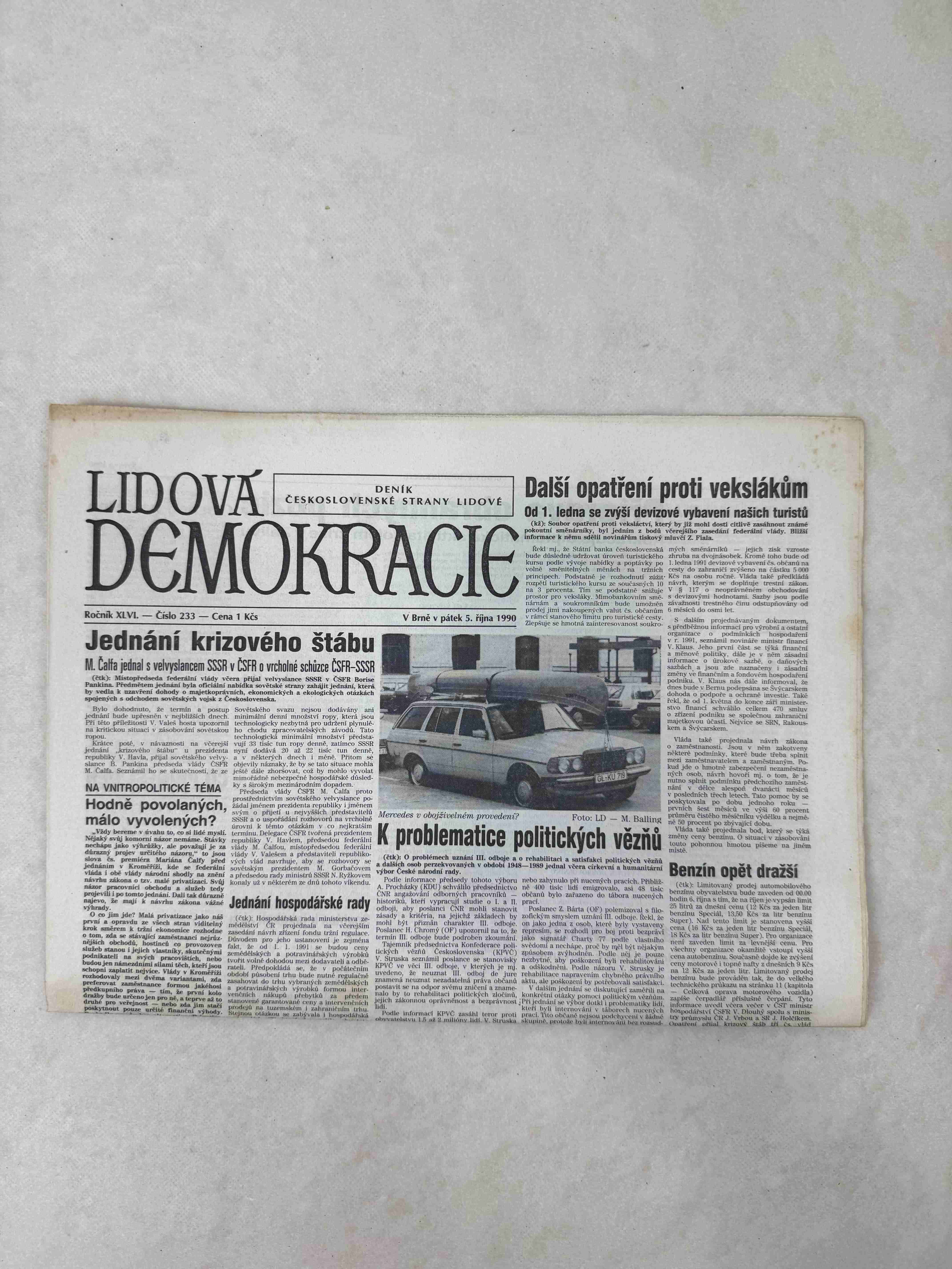 Originální dobový výtisk novin, nejedná se o reprodukci!