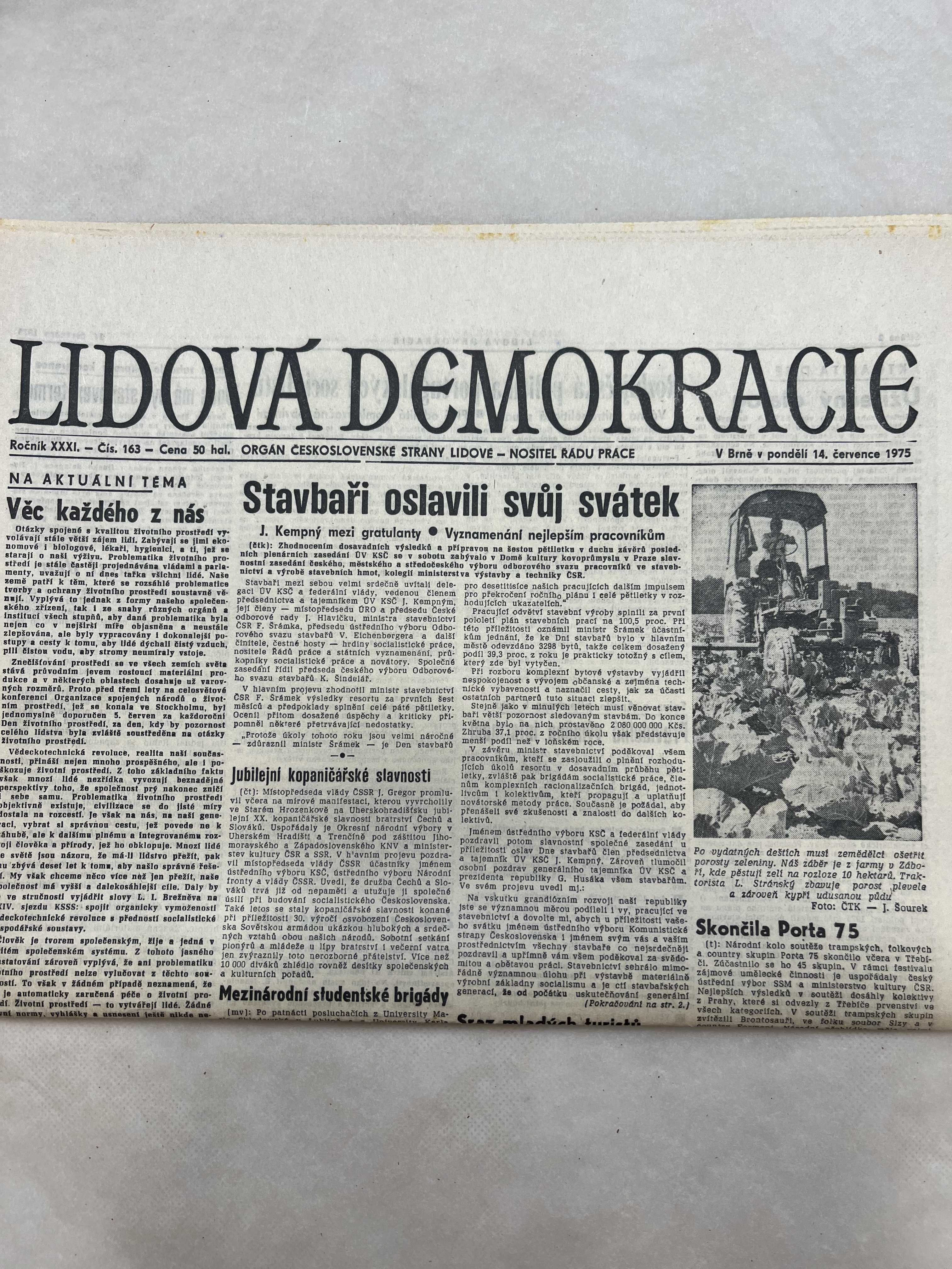 Noviny Lidová demokracie 14.7.1975