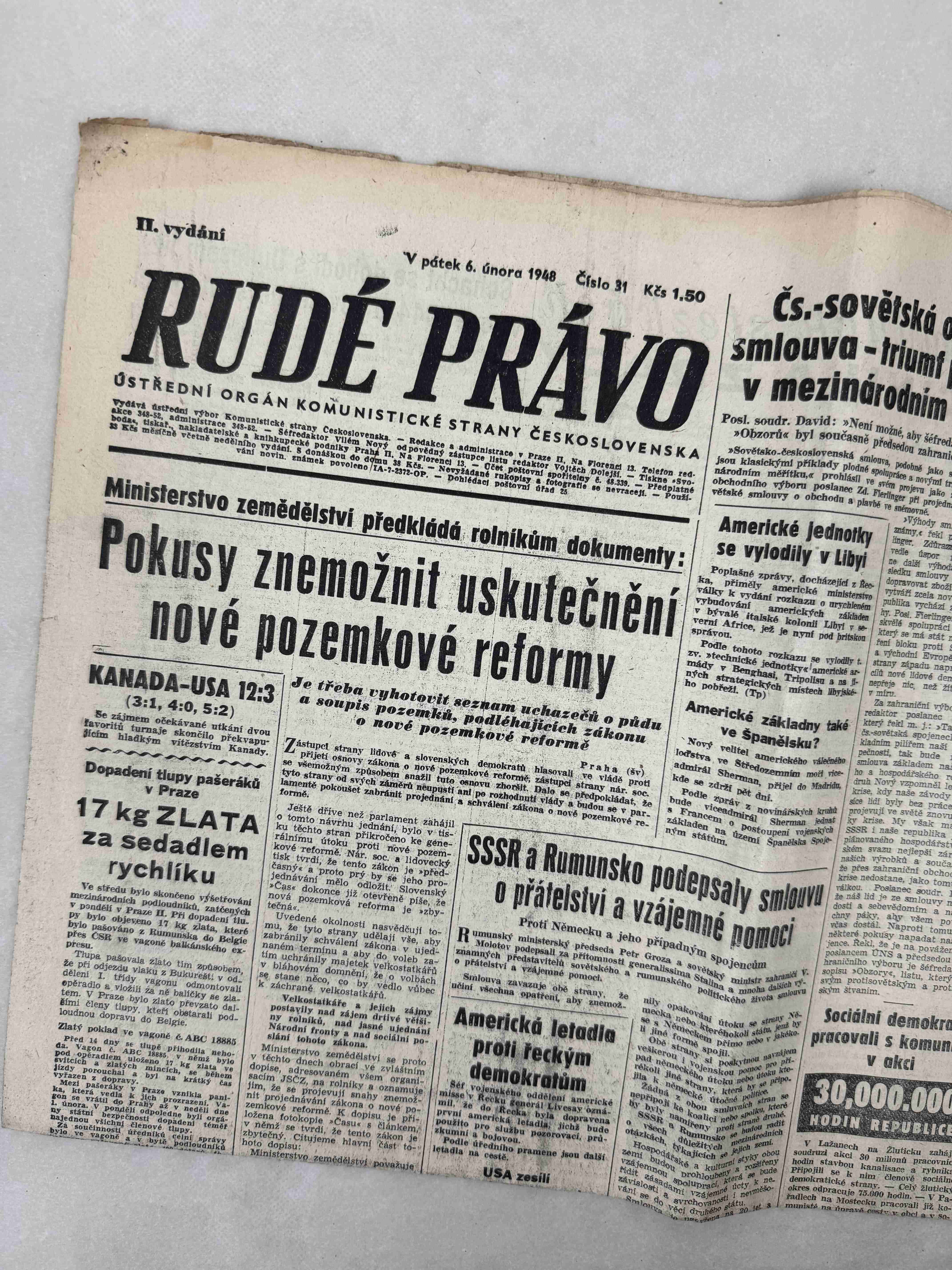 Originální dobový výtisk novin, nejedná se o reprodukci!