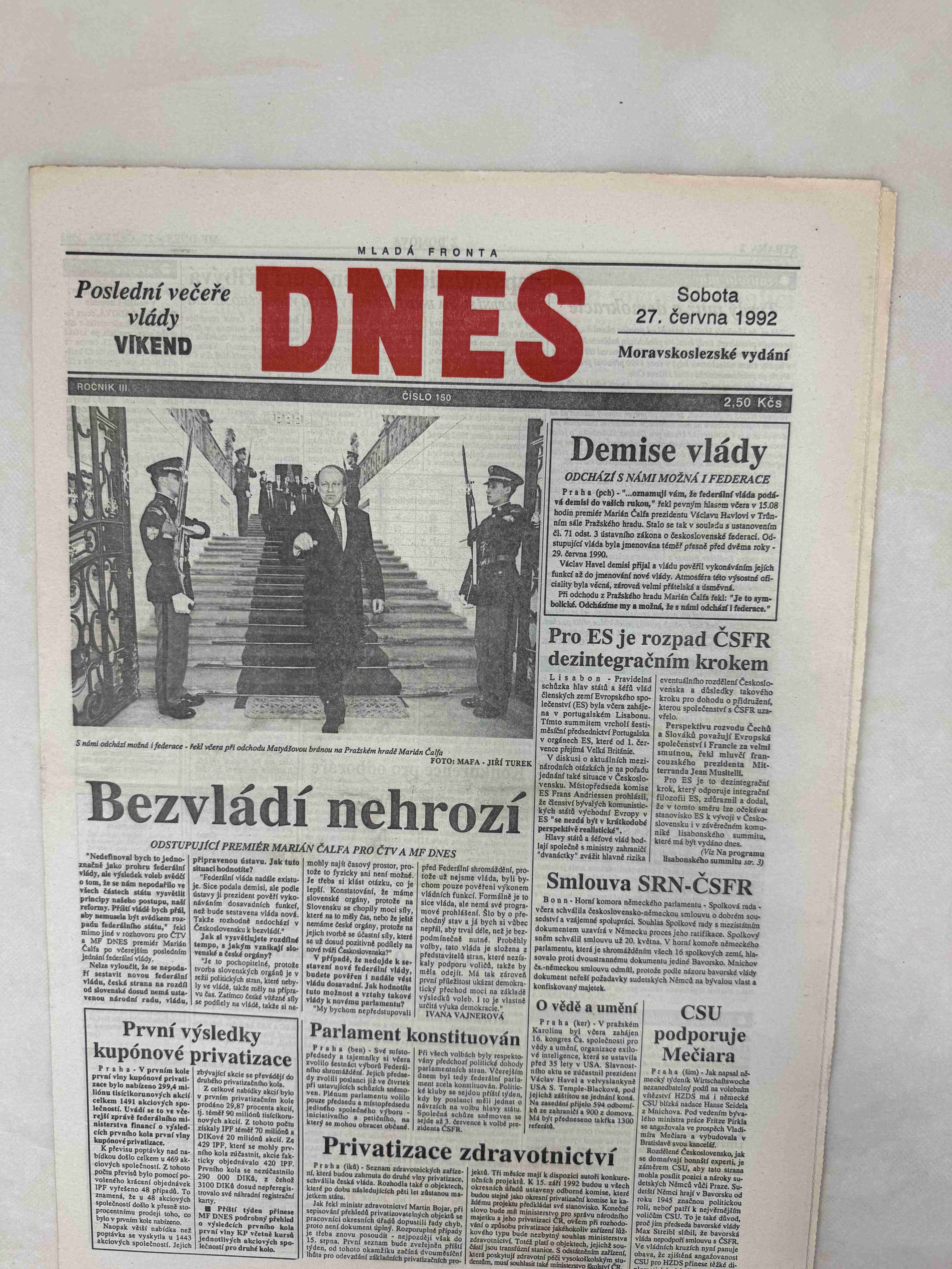 Originální dobový výtisk novin, nejedná se o reprodukci!