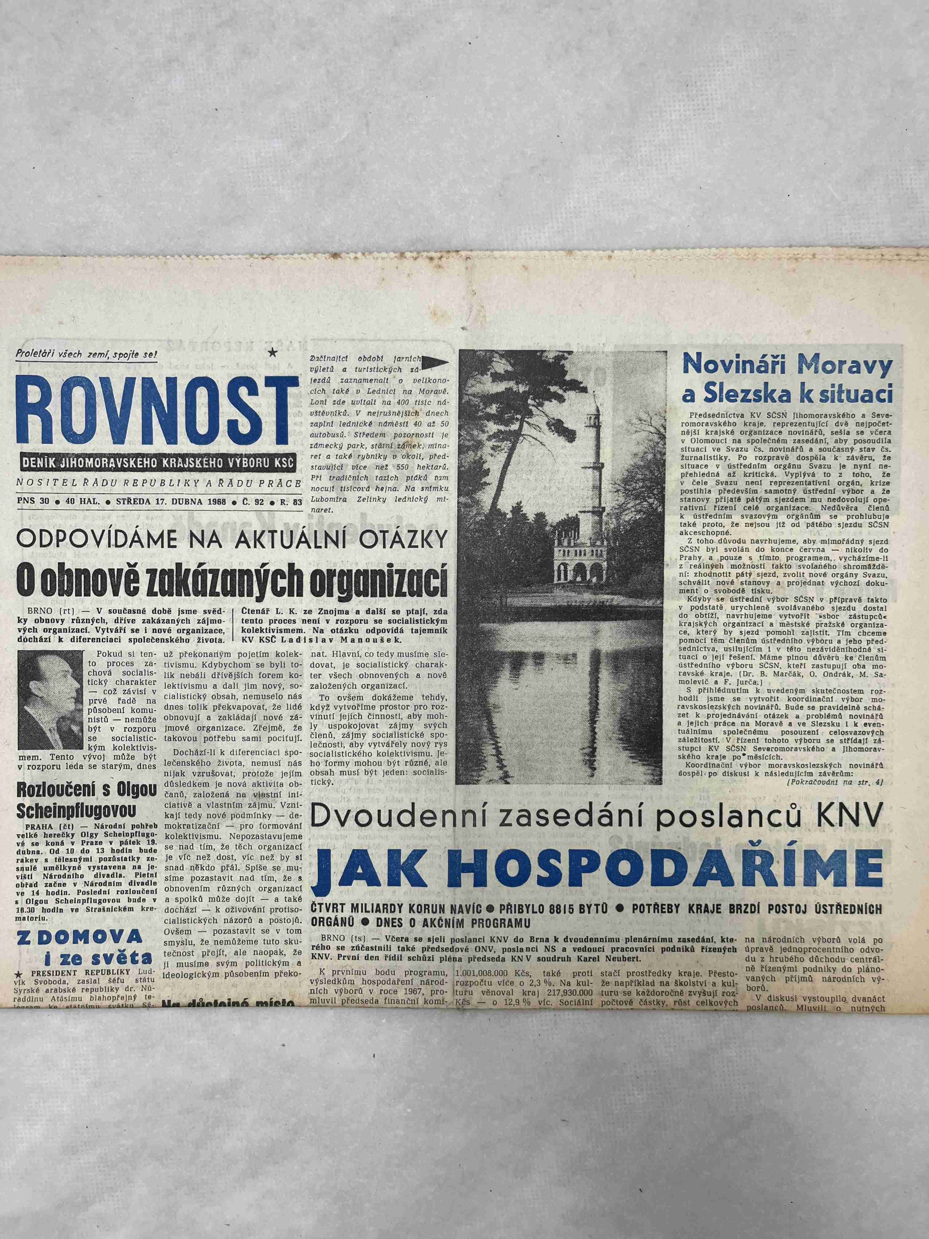 Originální dobový výtisk novin, nejedná se o reprodukci!