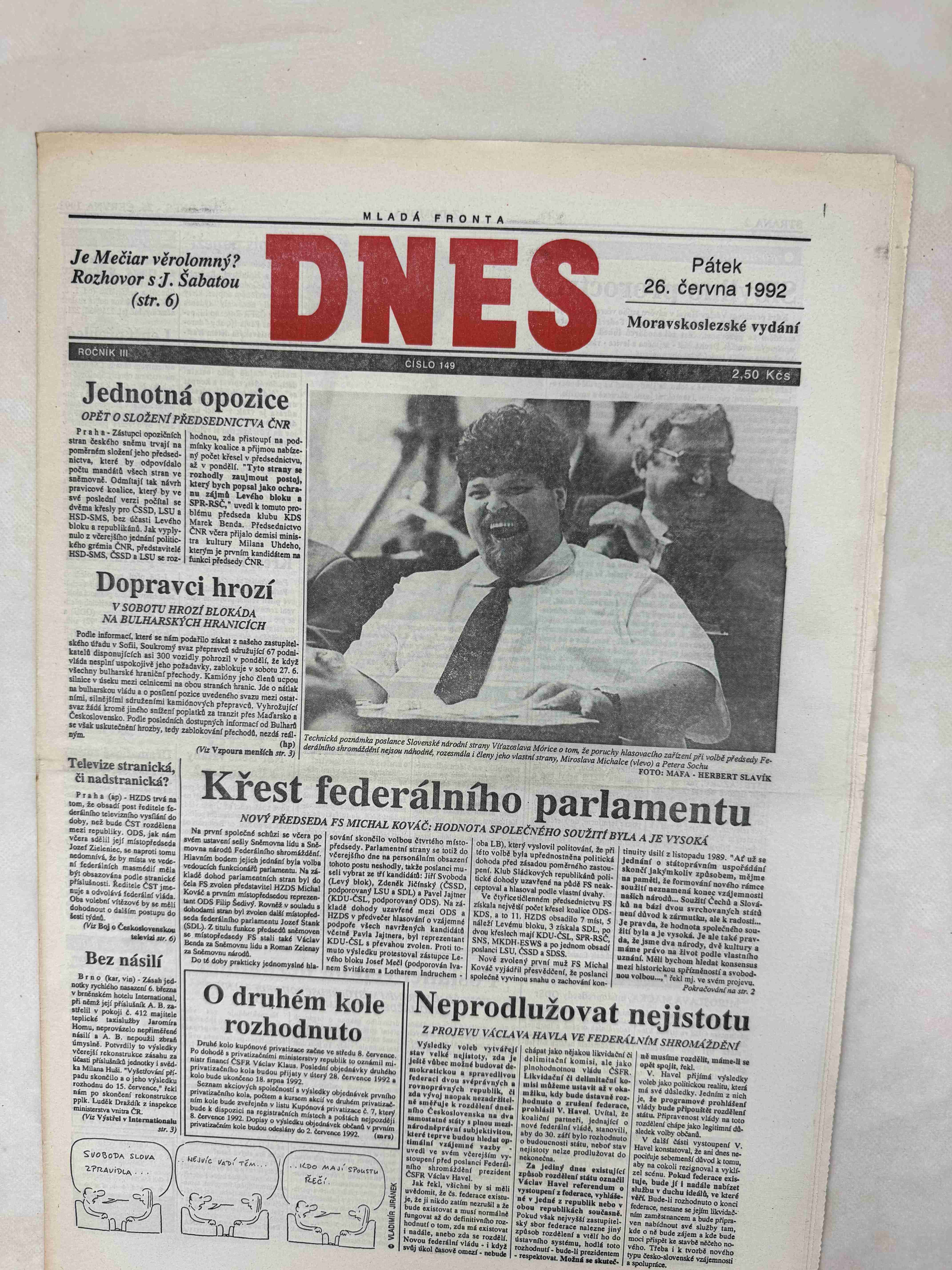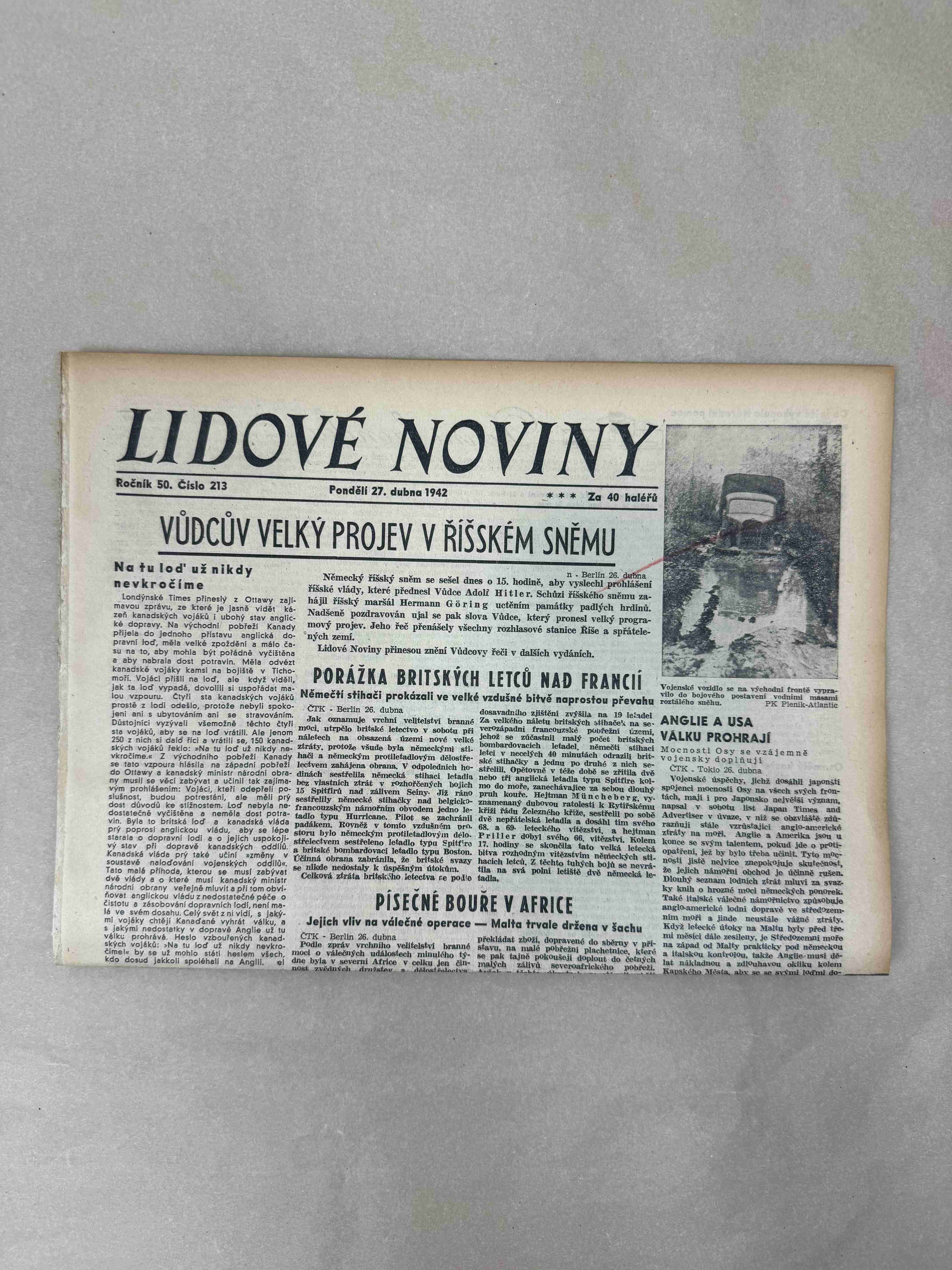 Originální dobový výtisk novin, nejedná se o reprodukci!