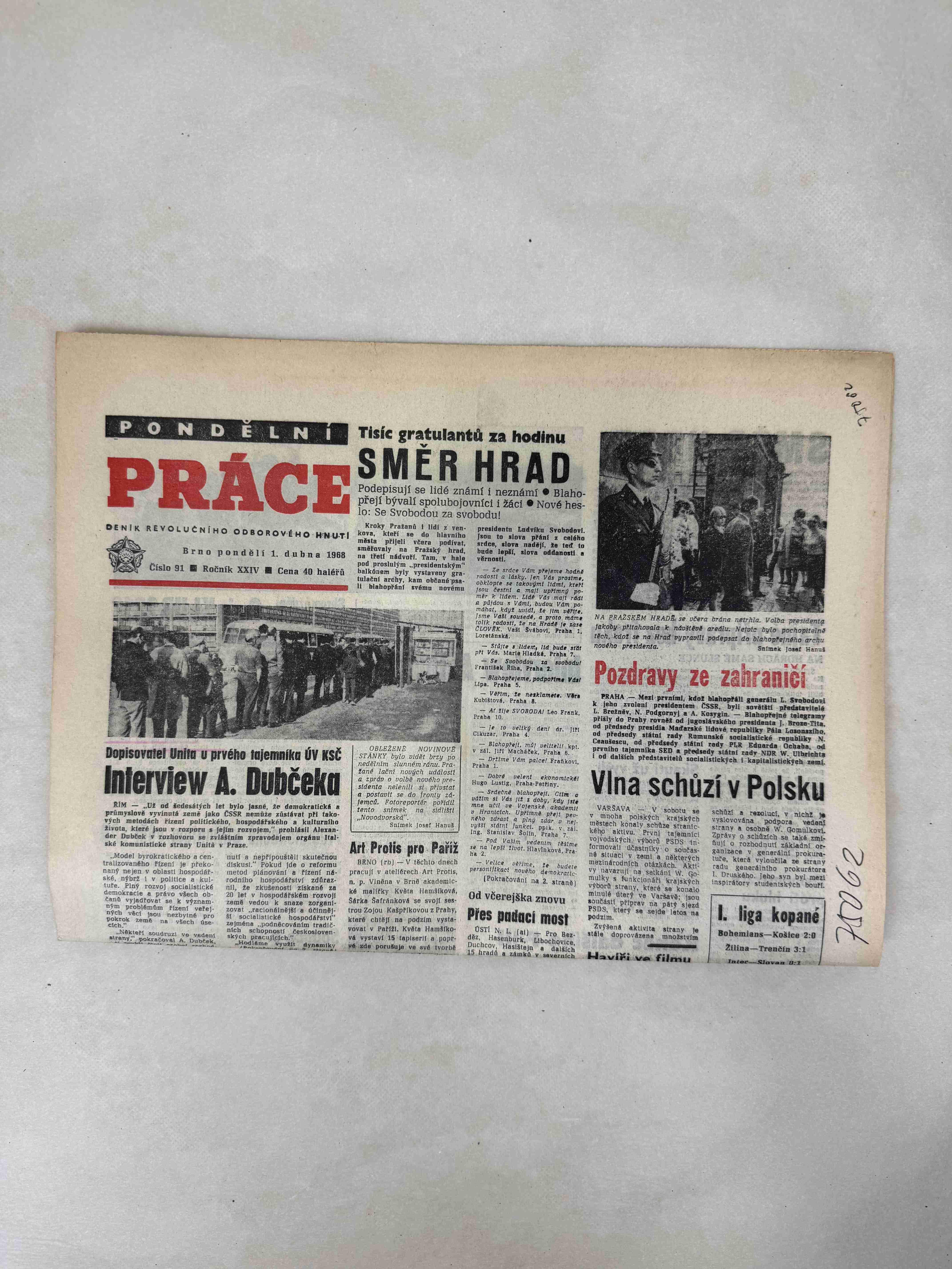 Originální dobový výtisk novin, nejedná se o reprodukci!