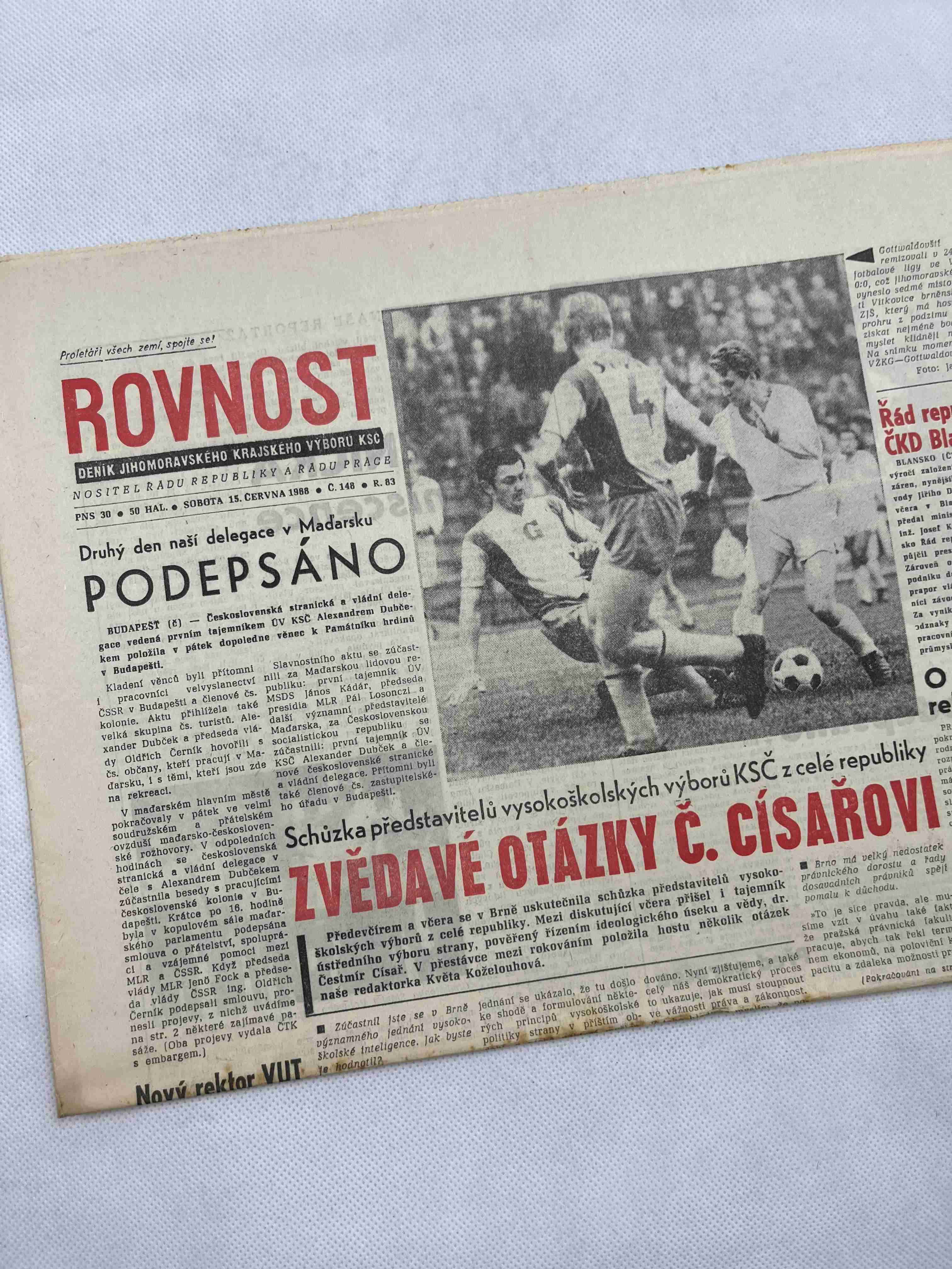 Originální dobový výtisk novin, nejedná se o reprodukci!