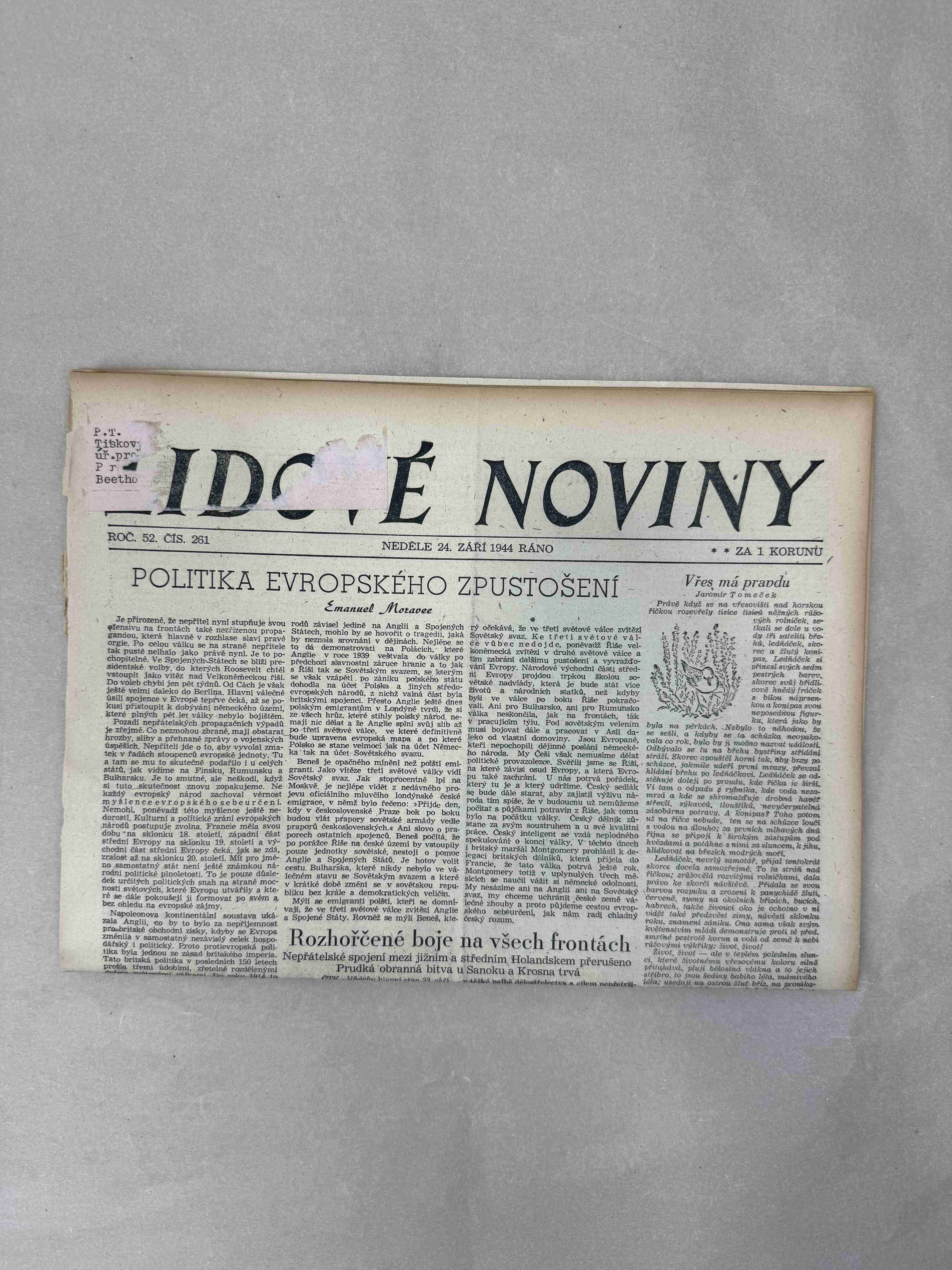 Originální dobový výtisk novin, nejedná se o reprodukci!
