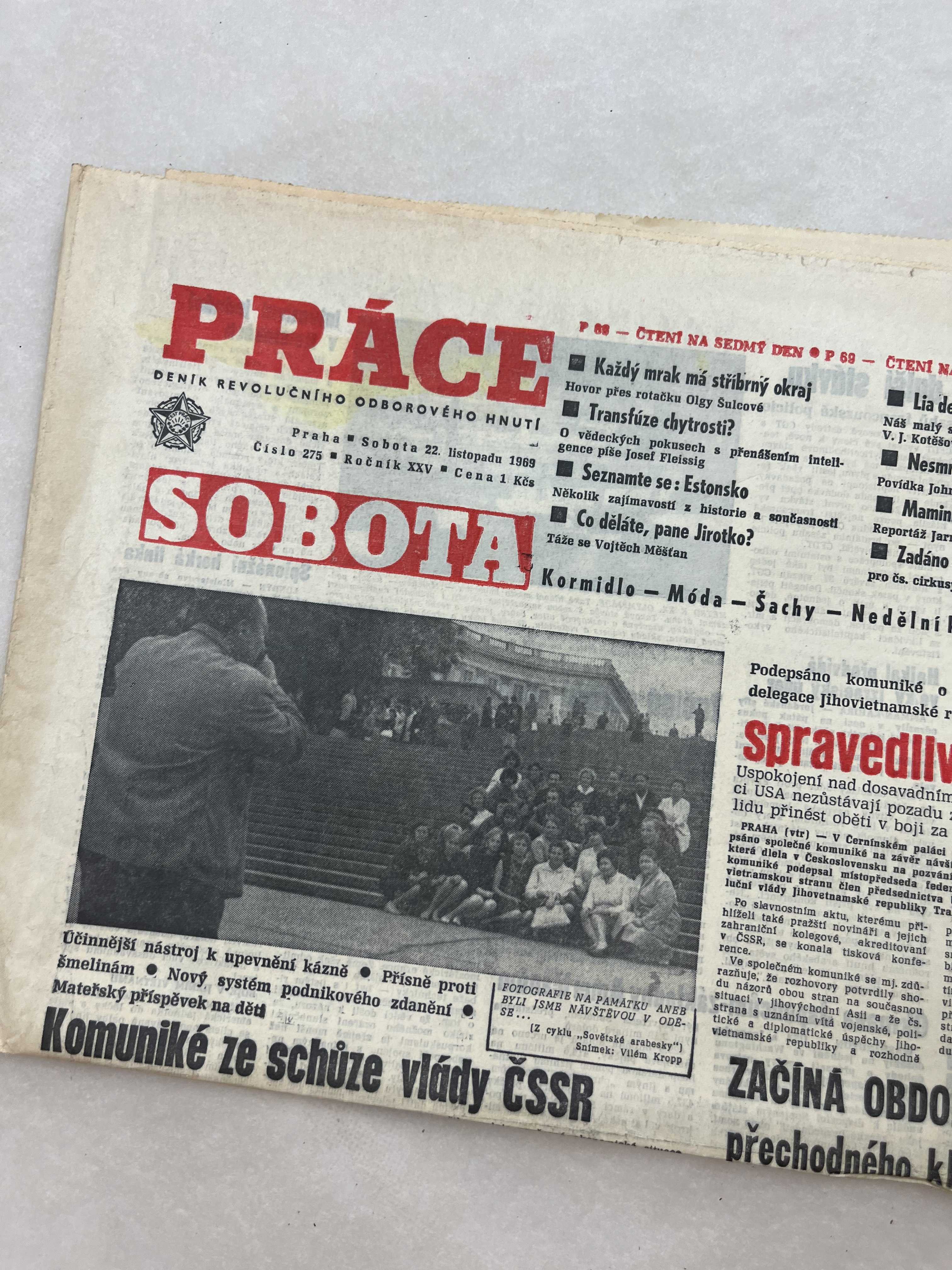 Noviny Práce 22.11.1969