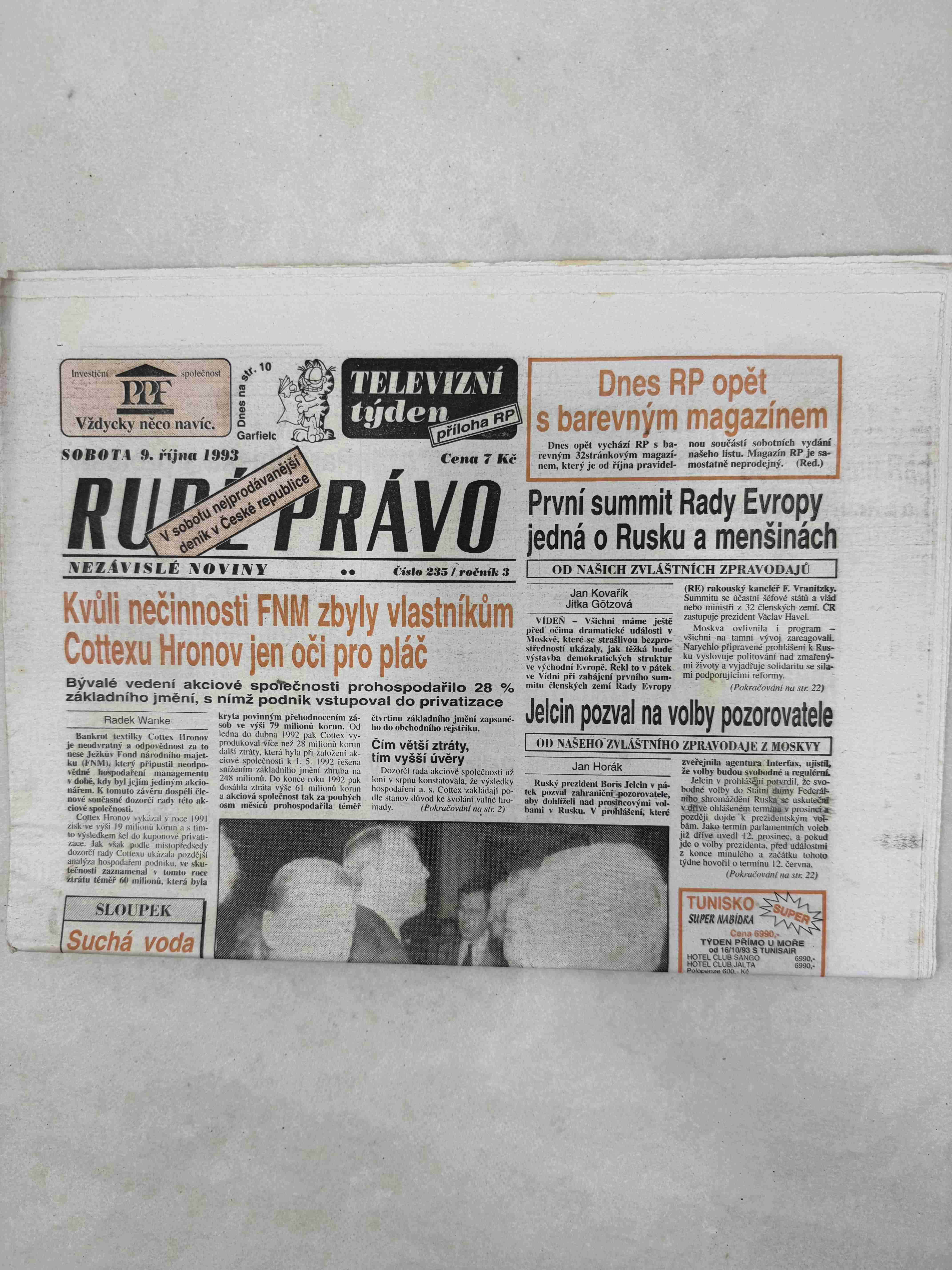 Originální dobový výtisk novin, nejedná se o reprodukci!