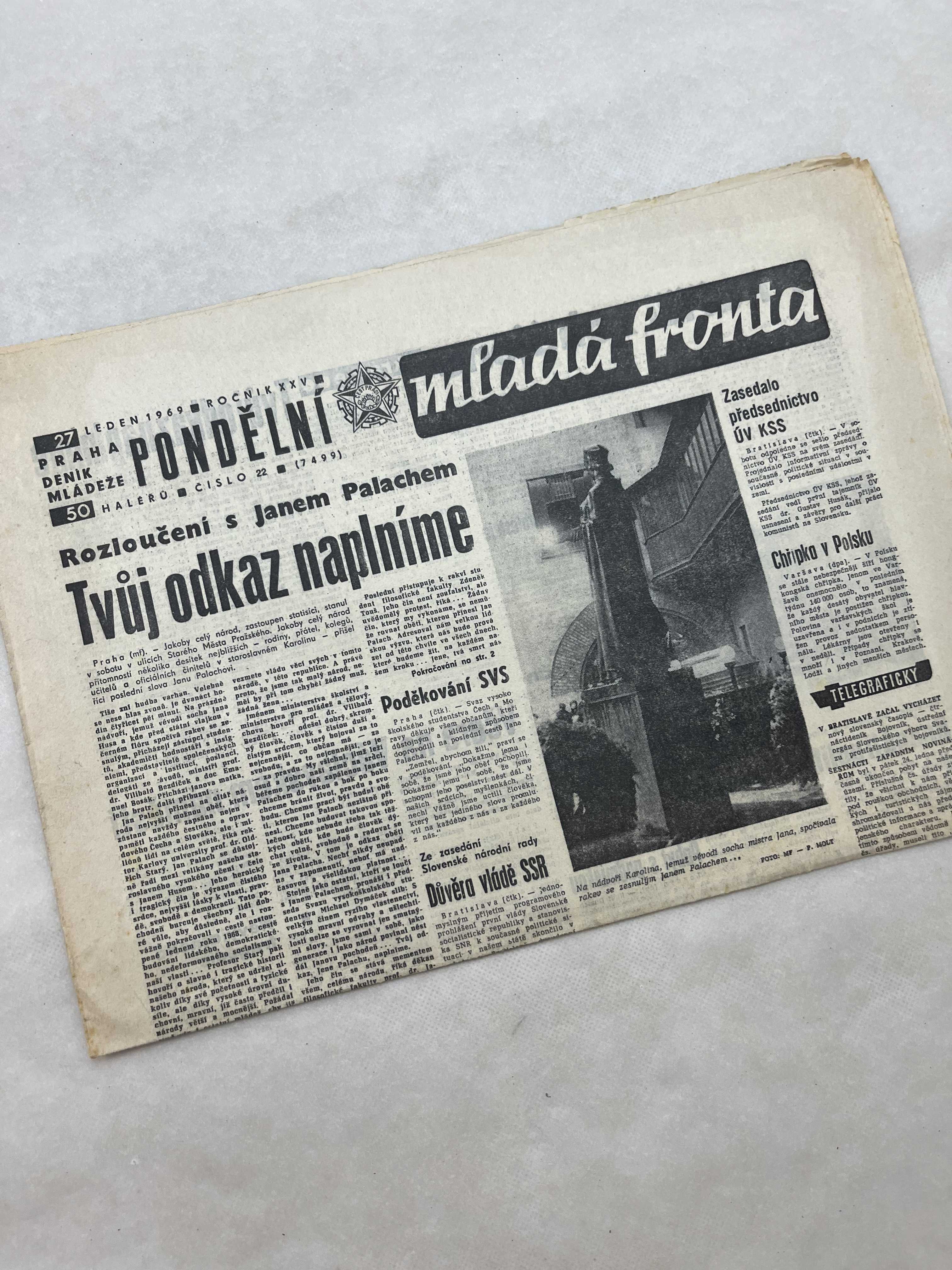 Noviny Mladá fronta 27.1.1969