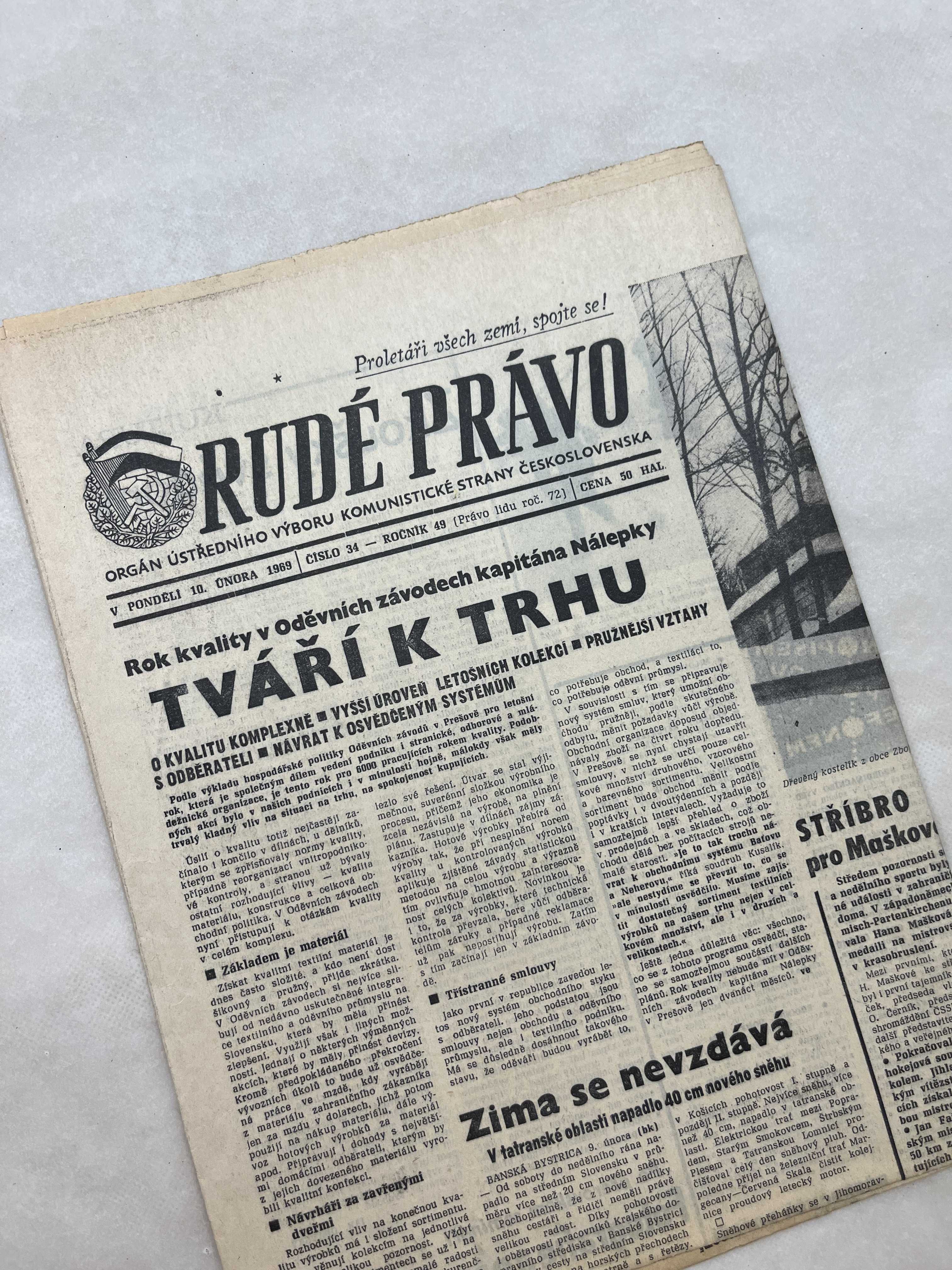Noviny Rudé právo 10.2.1969
