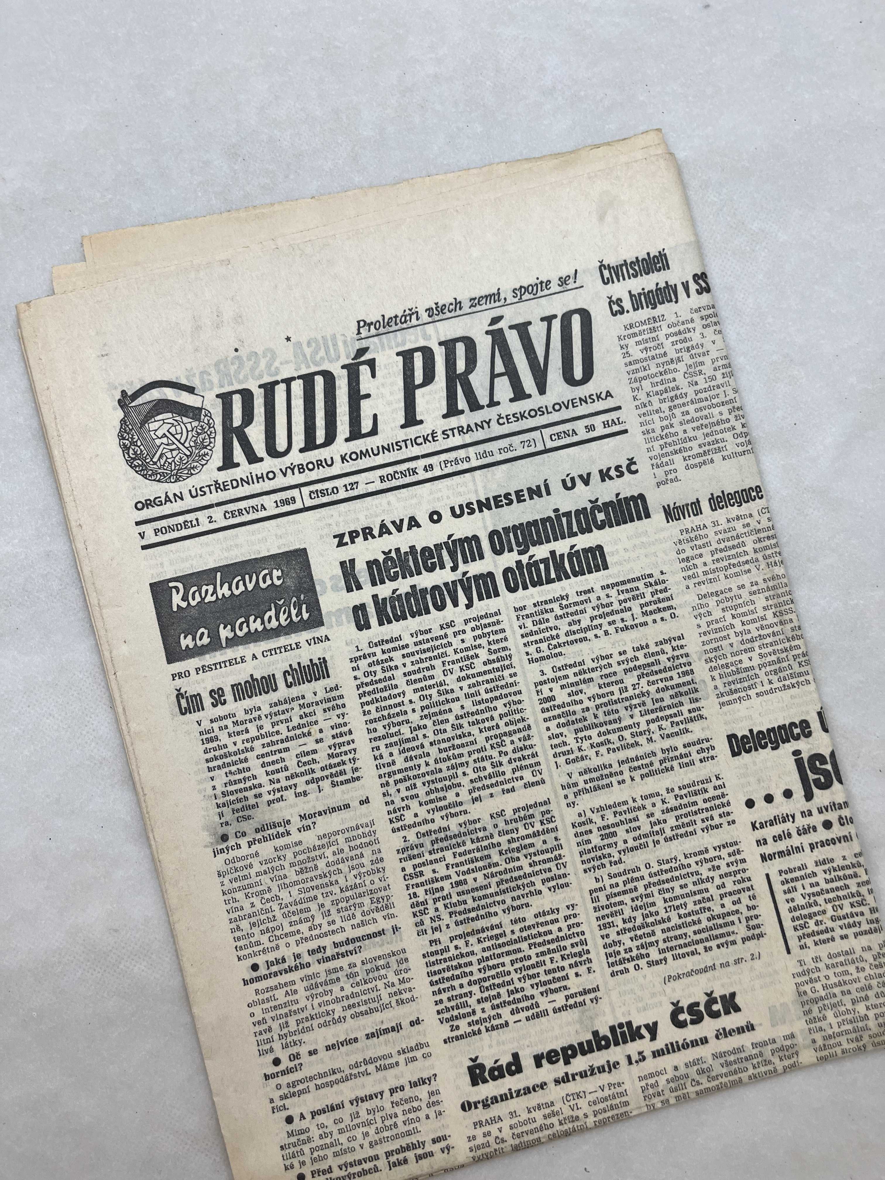 Noviny Rudé právo 2.6.1969