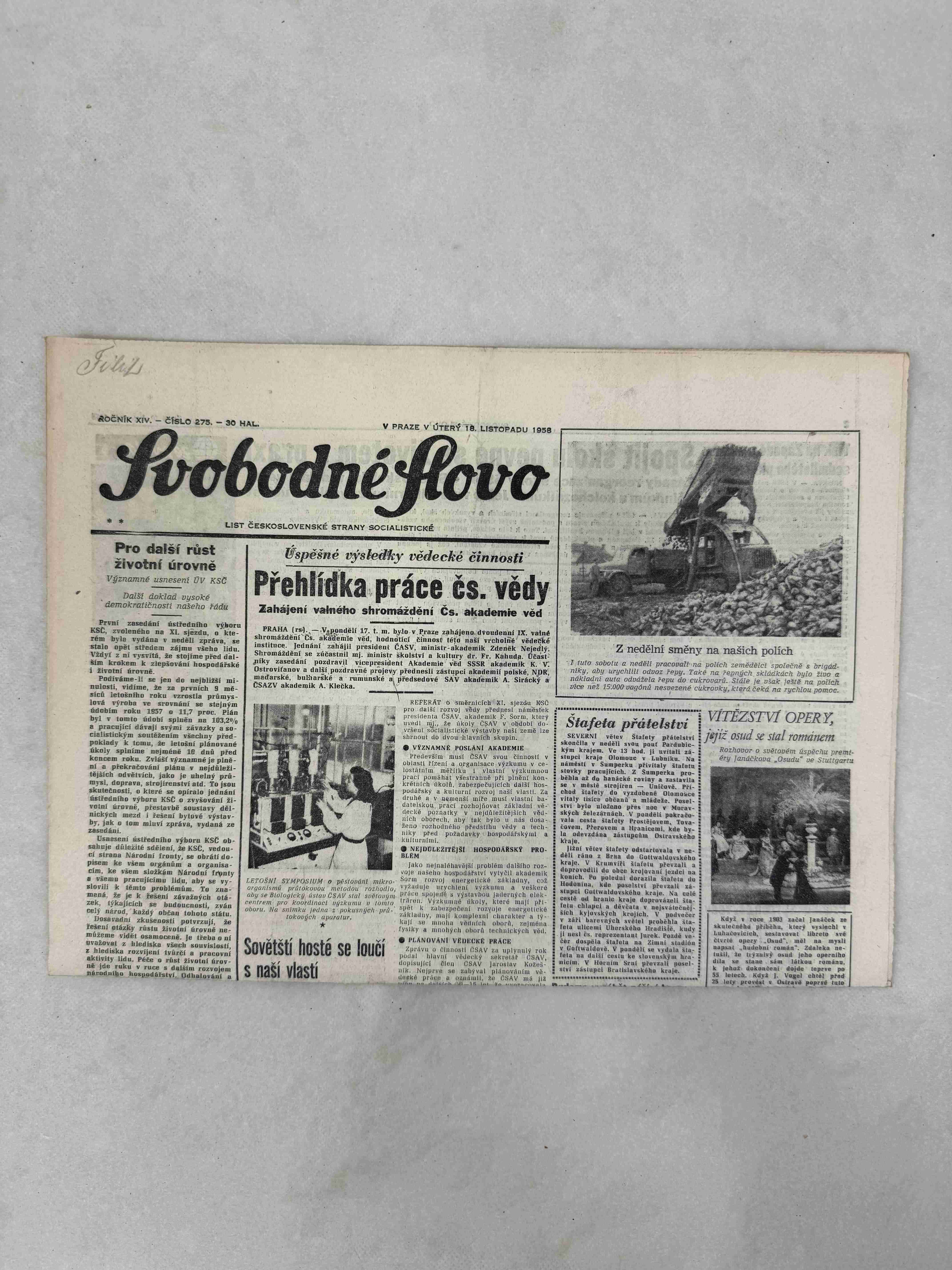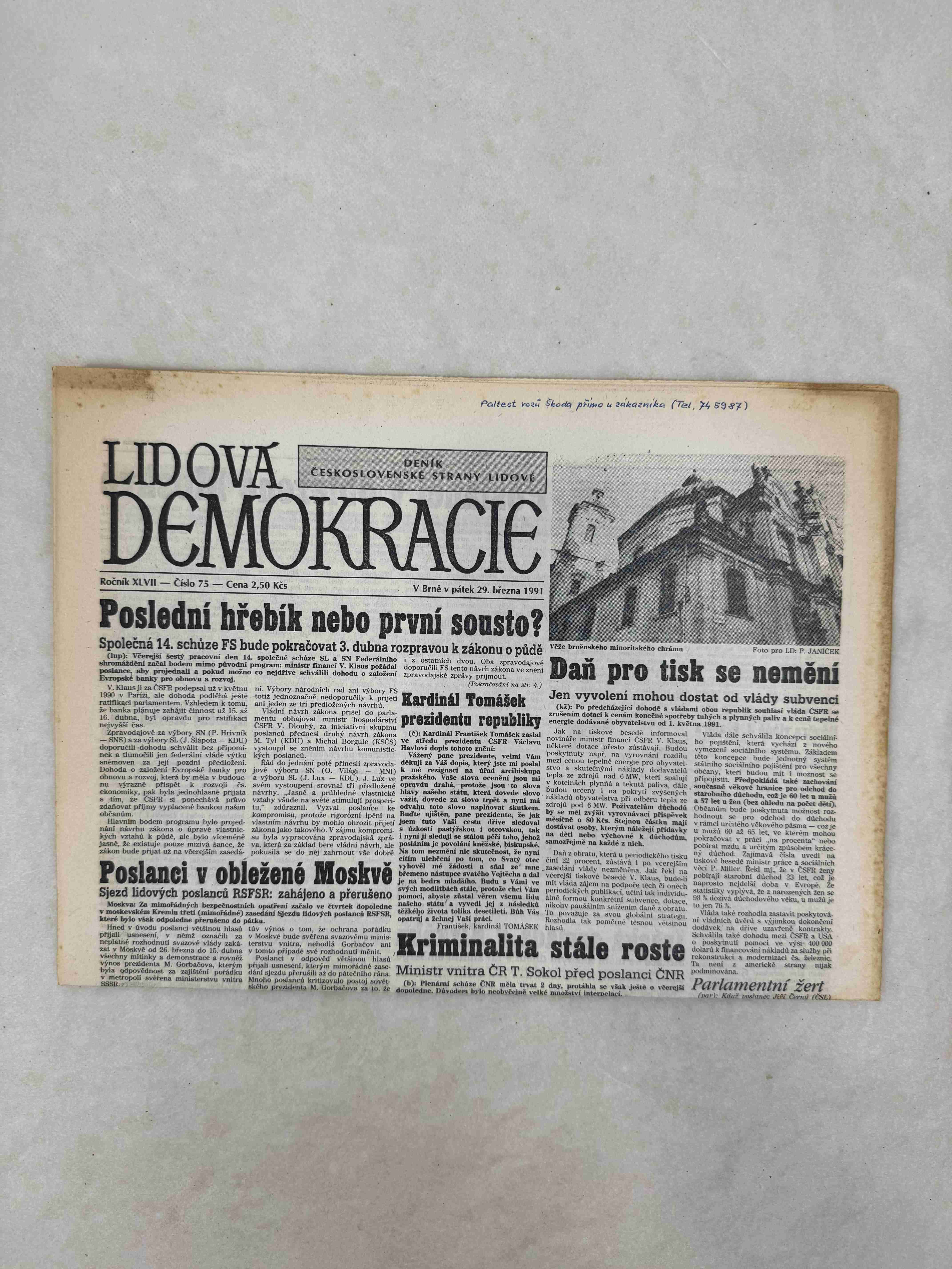 Originální dobový výtisk novin, nejedná se o reprodukci!