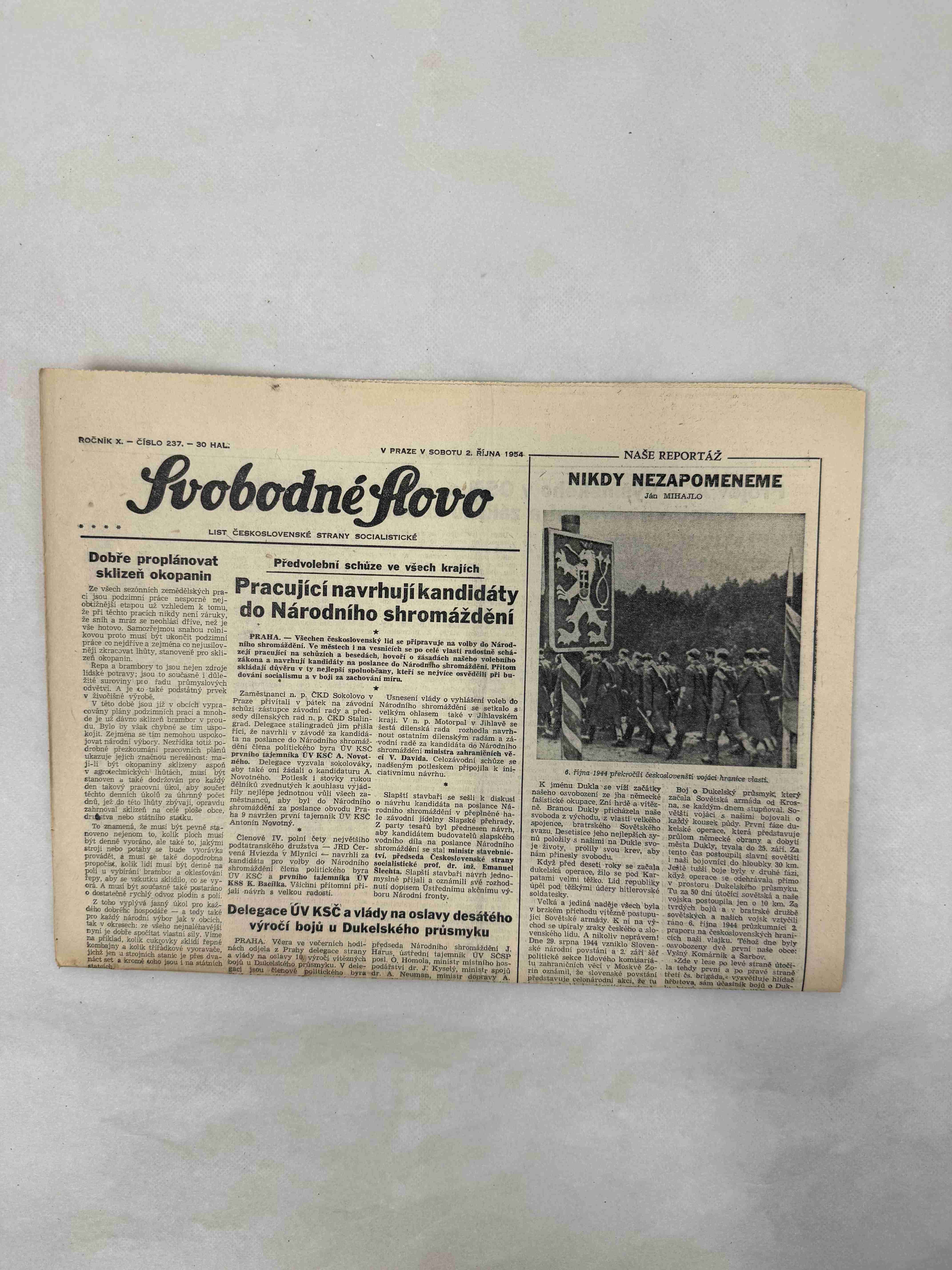 Originální dobový výtisk novin, nejedná se o reprodukci!