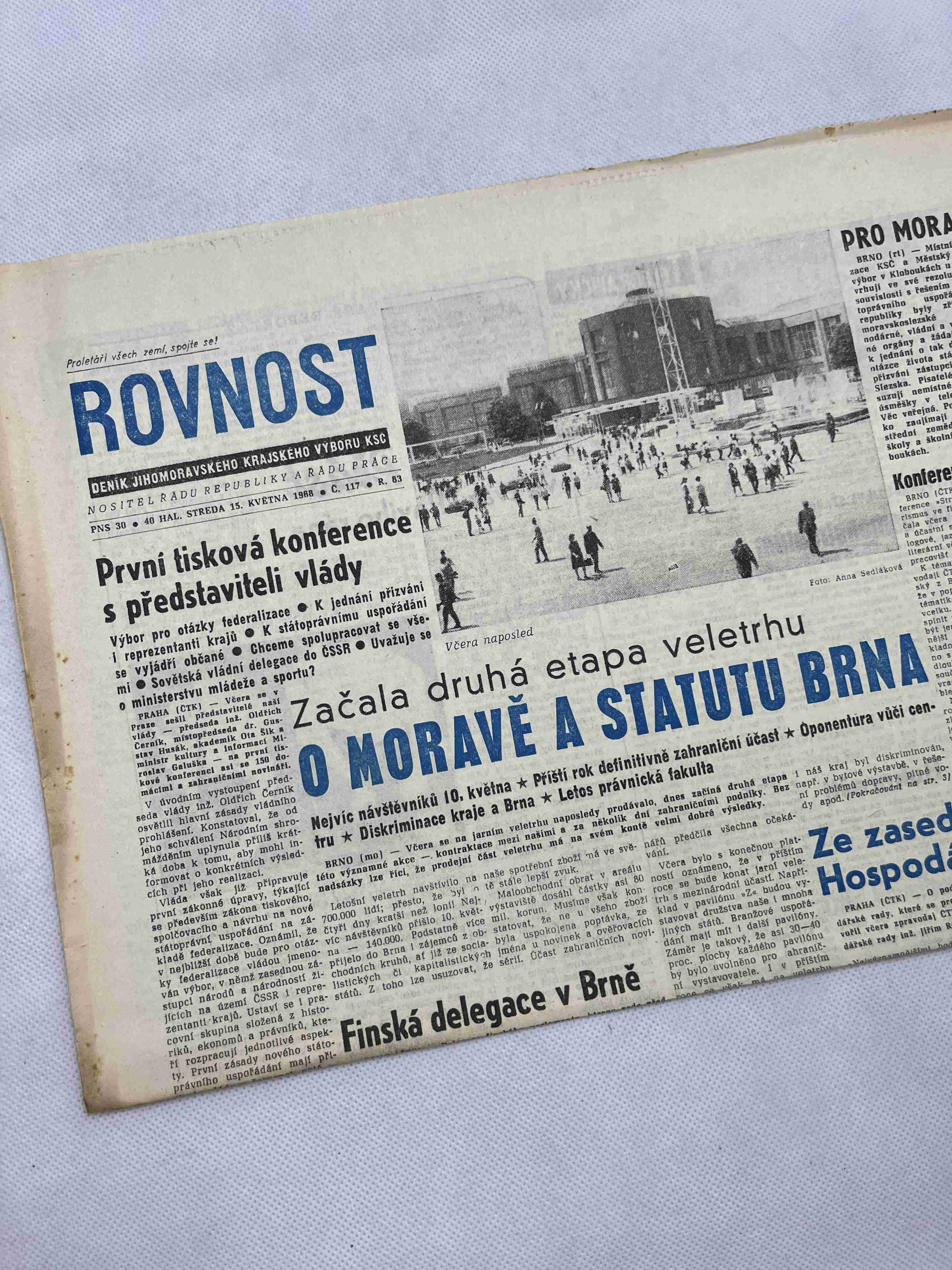 Originální dobový výtisk novin, nejedná se o reprodukci!