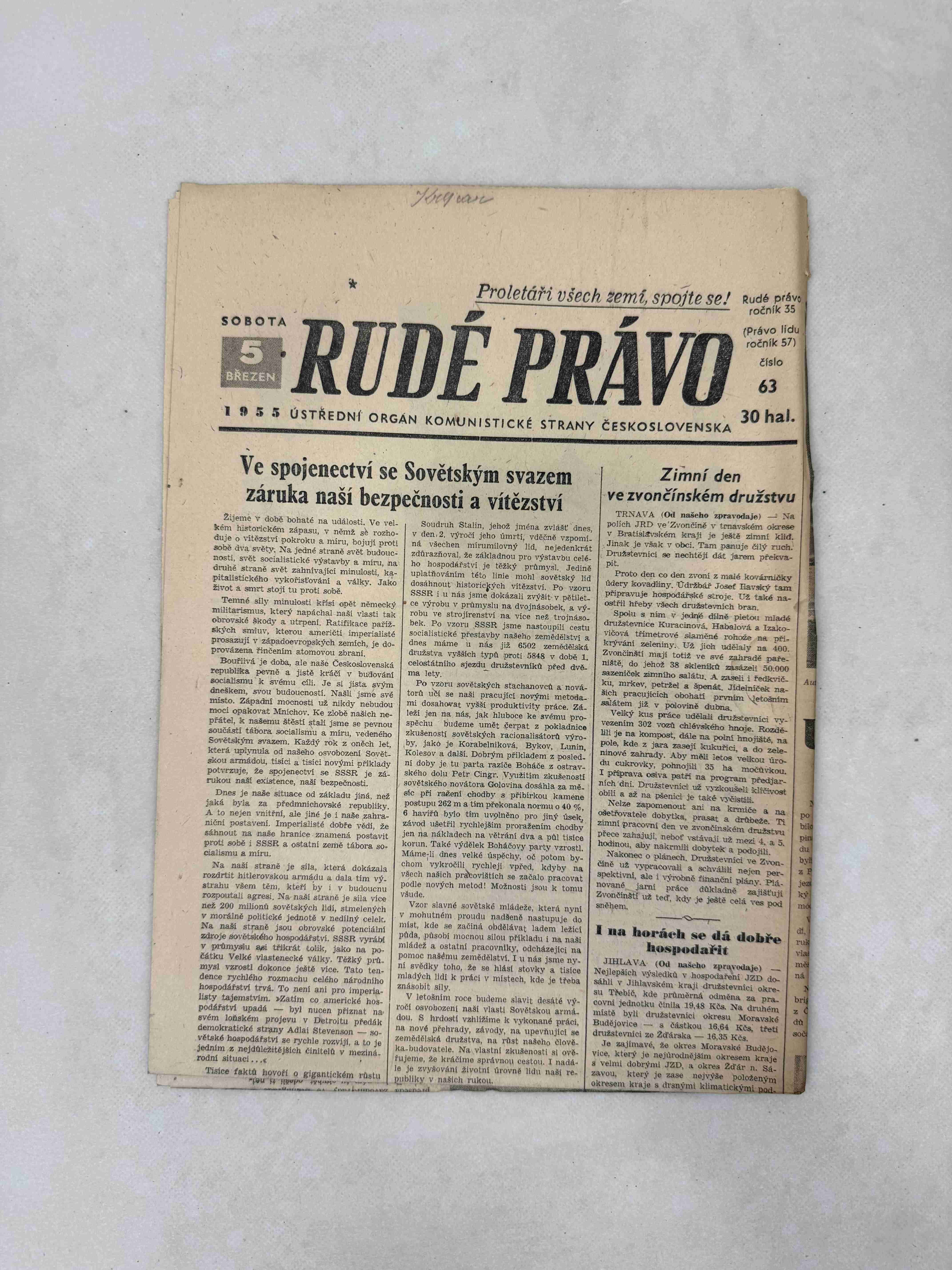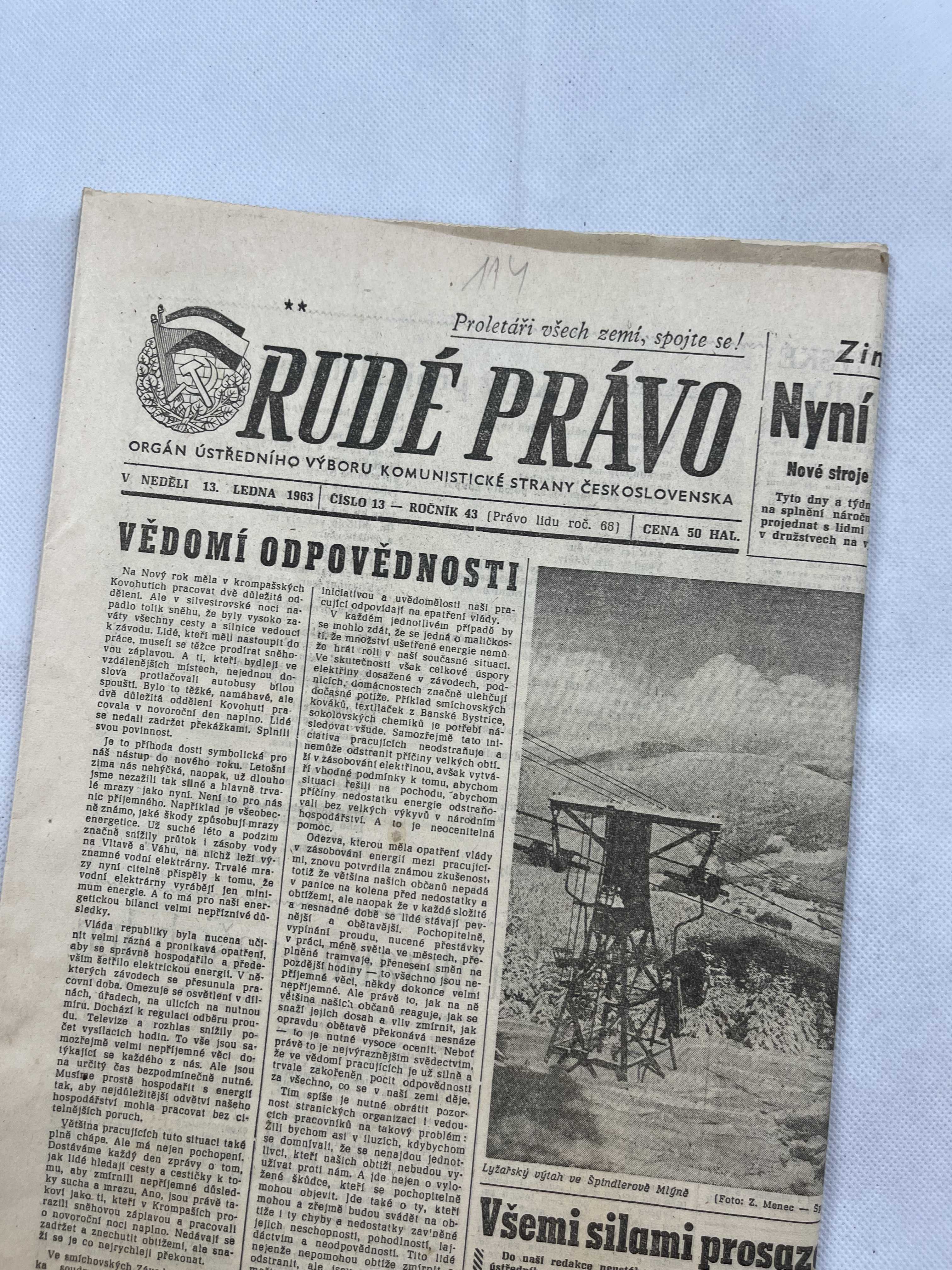 Noviny Rudé právo 13. 1. 1963