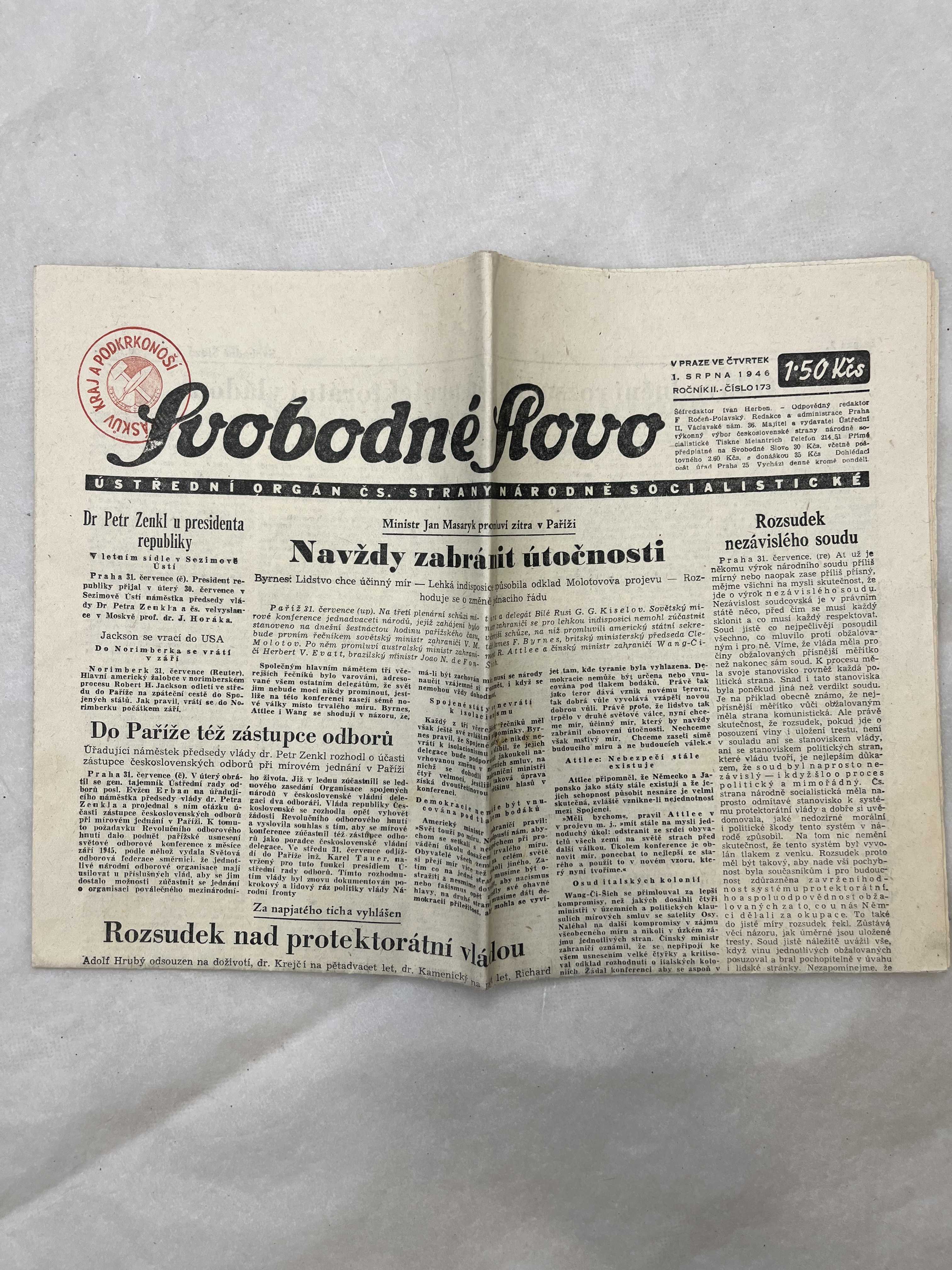 Svobodné slovo 1.8.1946