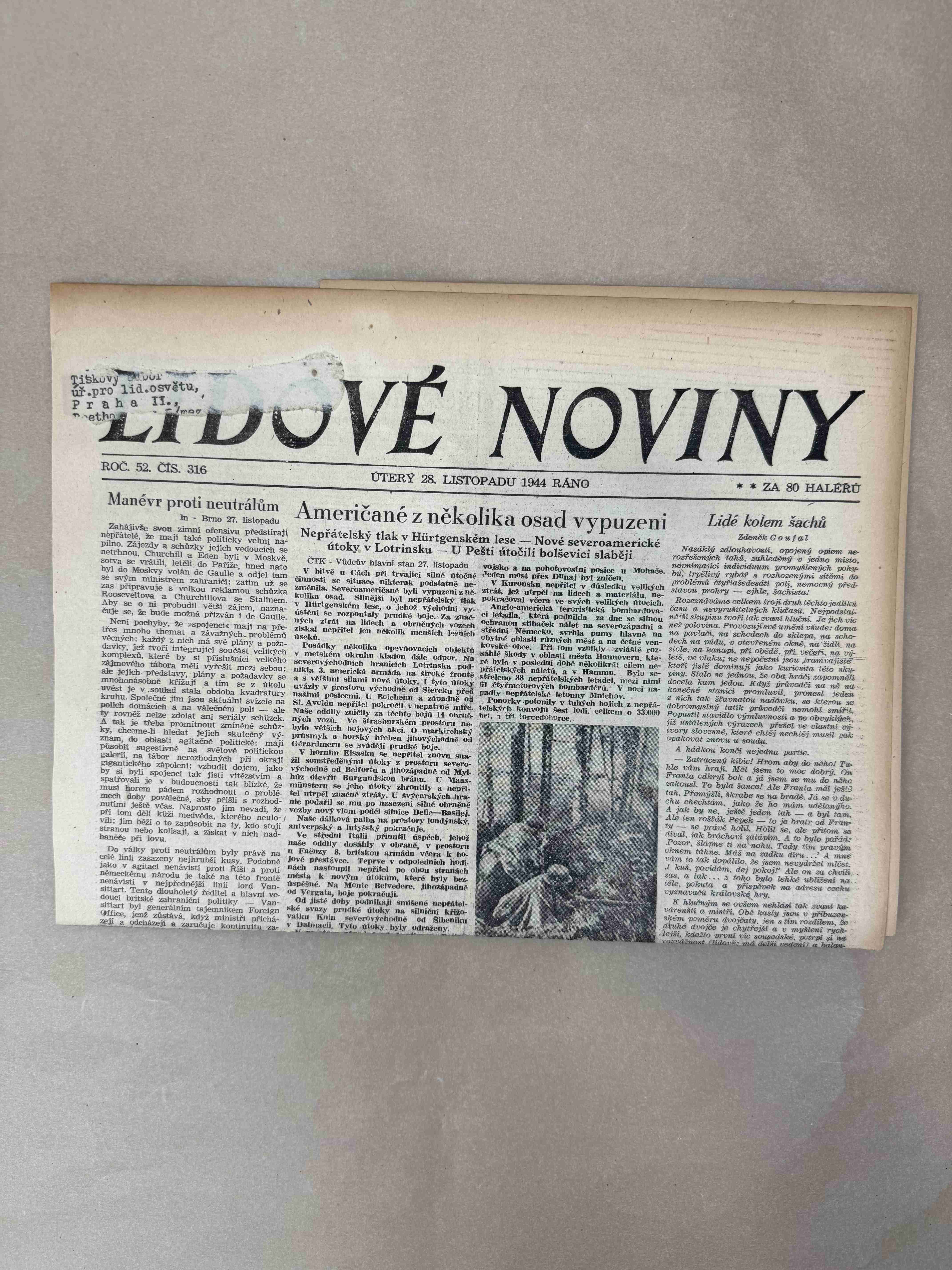 Originální dobový výtisk novin, nejedná se o reprodukci!