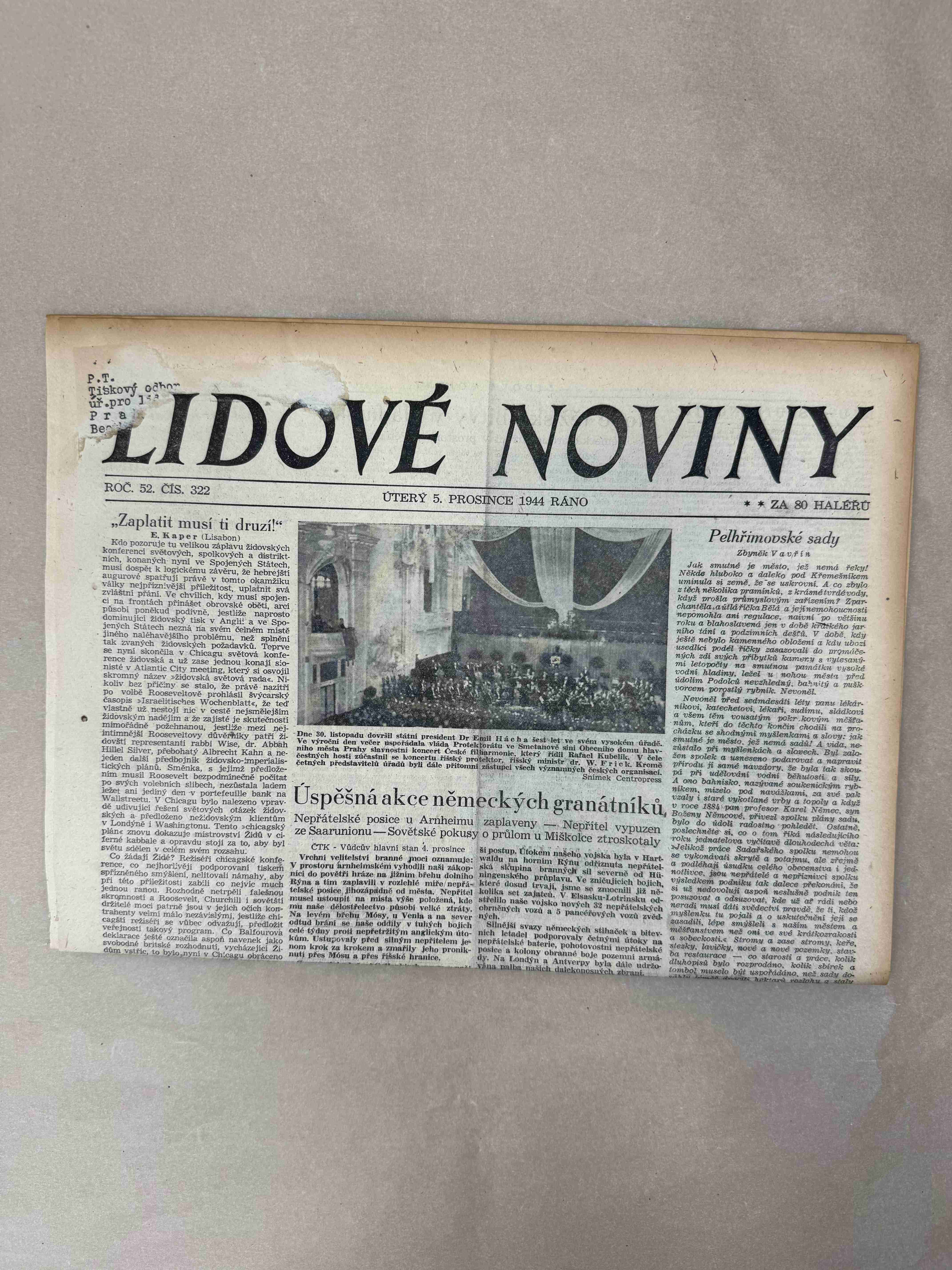 Originální dobový výtisk novin, nejedná se o reprodukci!