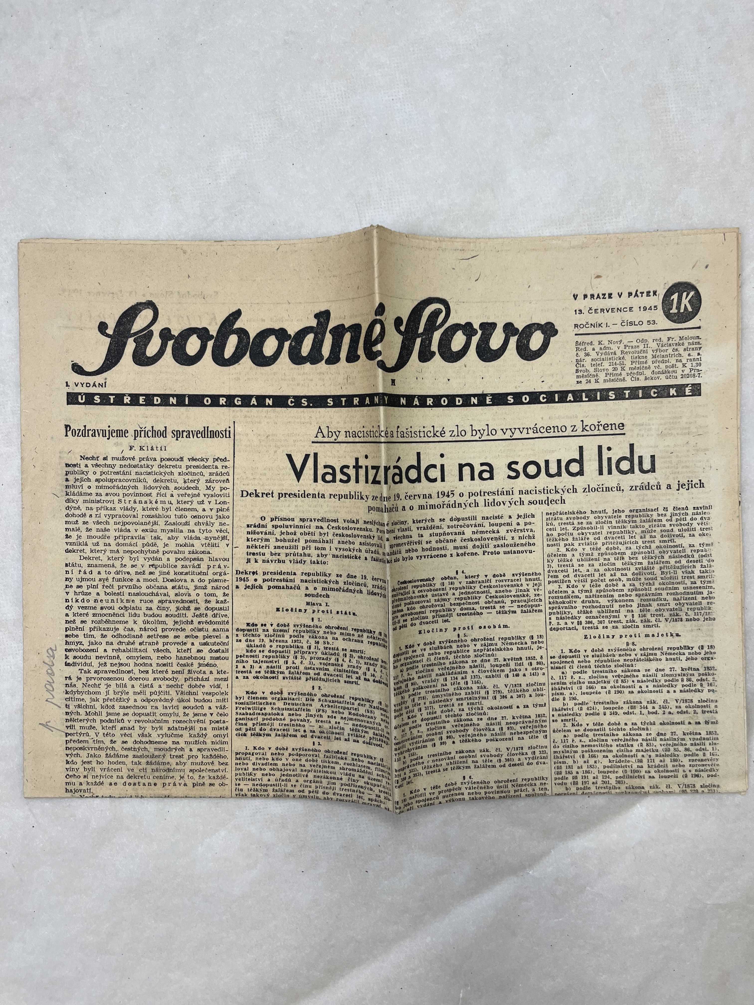 Svobodné slovo 13.7.1945