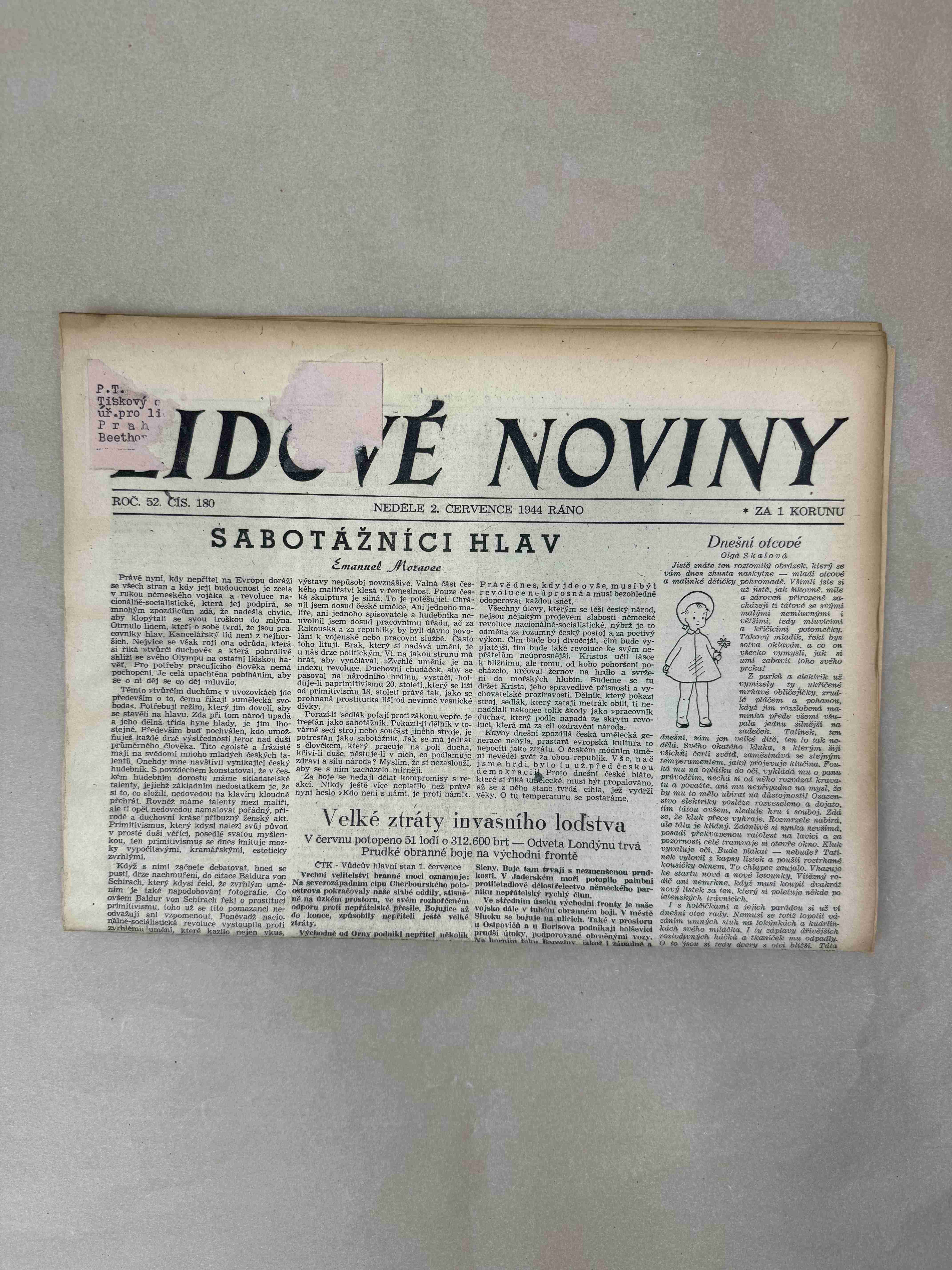 Nabízené noviny jsou určeny výhradně ke sběratelským účelům a neslouží k propagaci jakéhokoliv hnutí směřujícího k potlačení práv a svobod člověka (nacistického, komunistického apod.). Prodávající se distancuje od výše uvedených hnutí a jejich myšlenek.