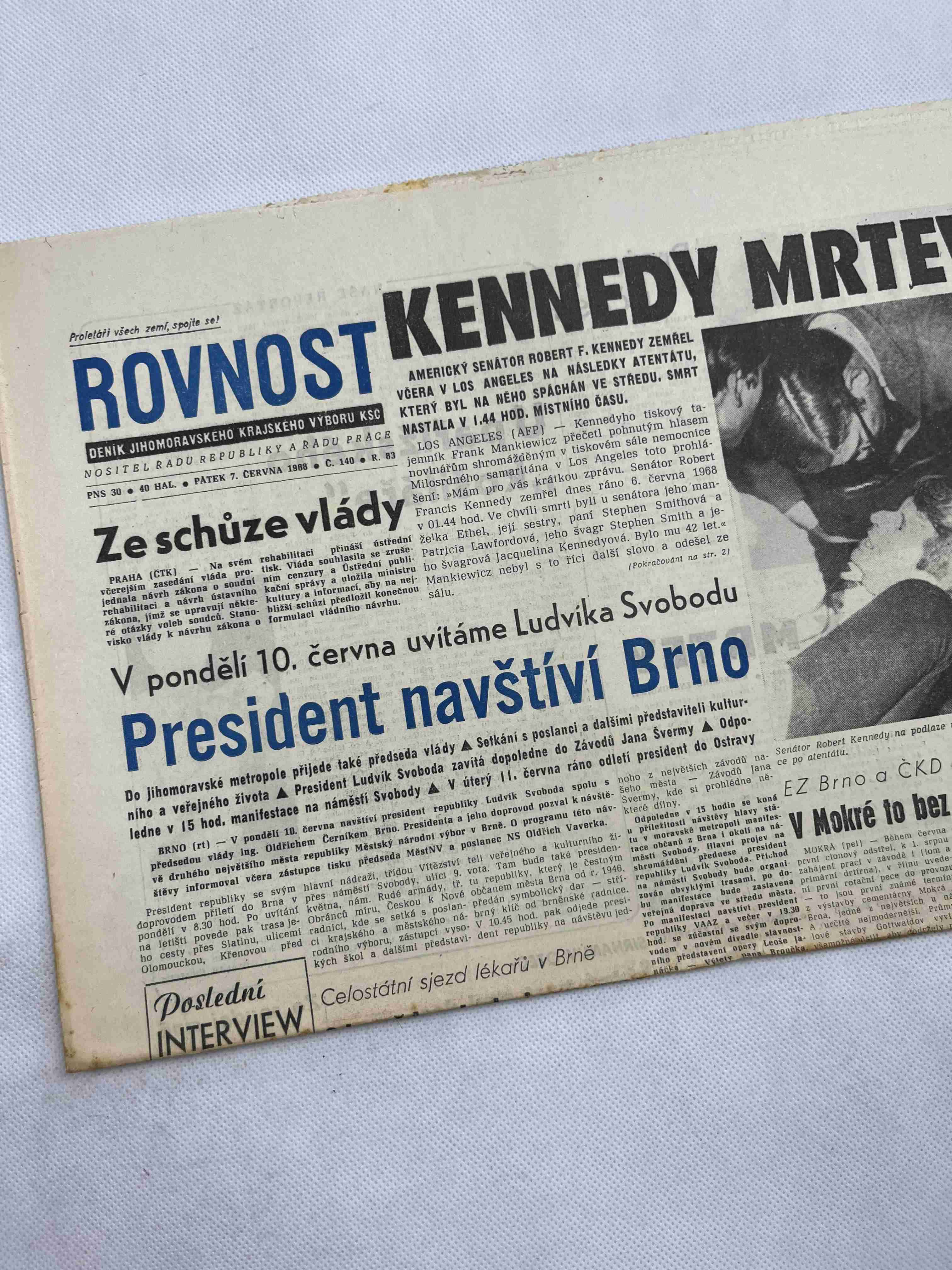Originální dobový výtisk novin, nejedná se o reprodukci!