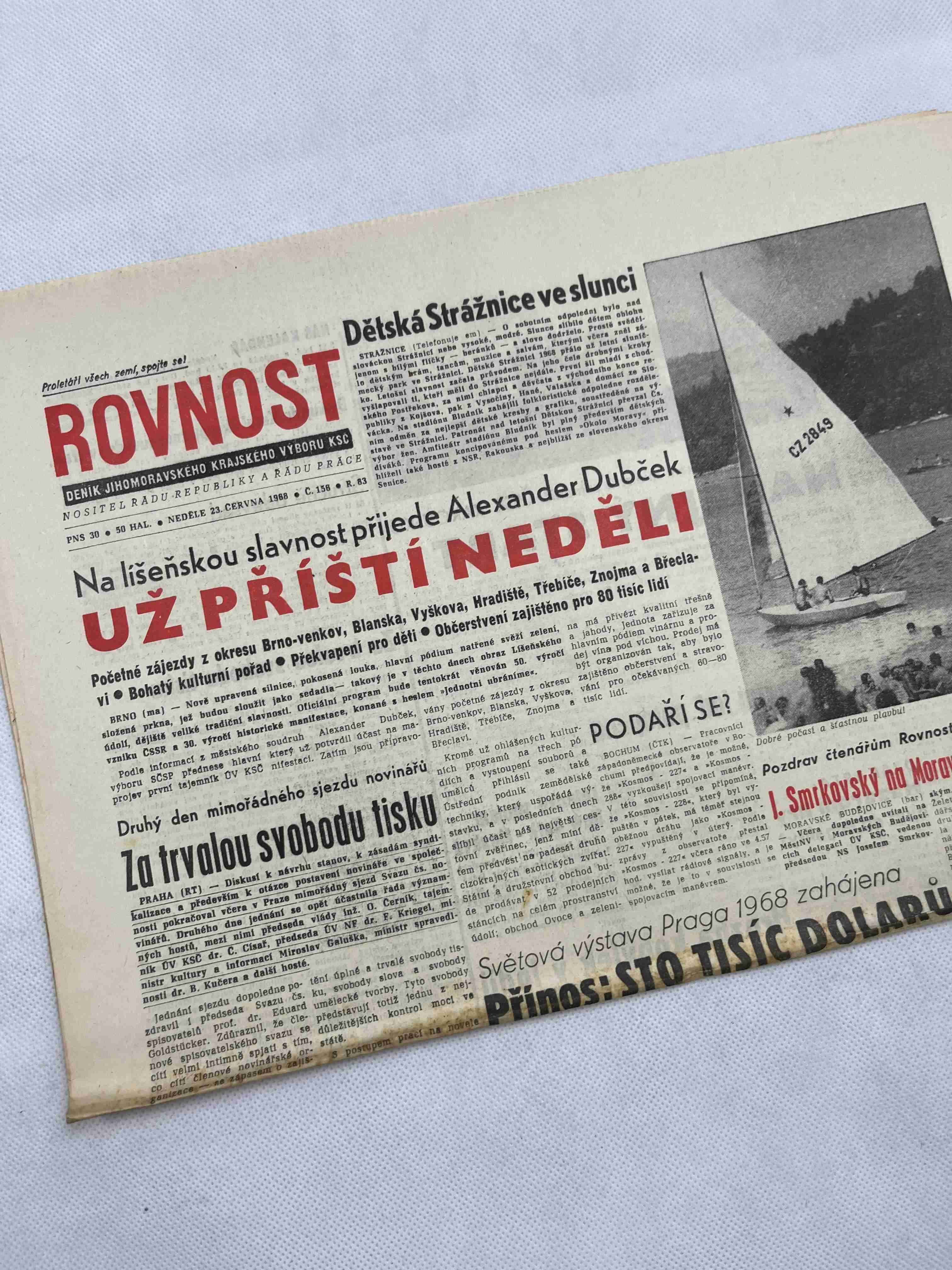 Originální dobový výtisk novin, nejedná se o reprodukci!