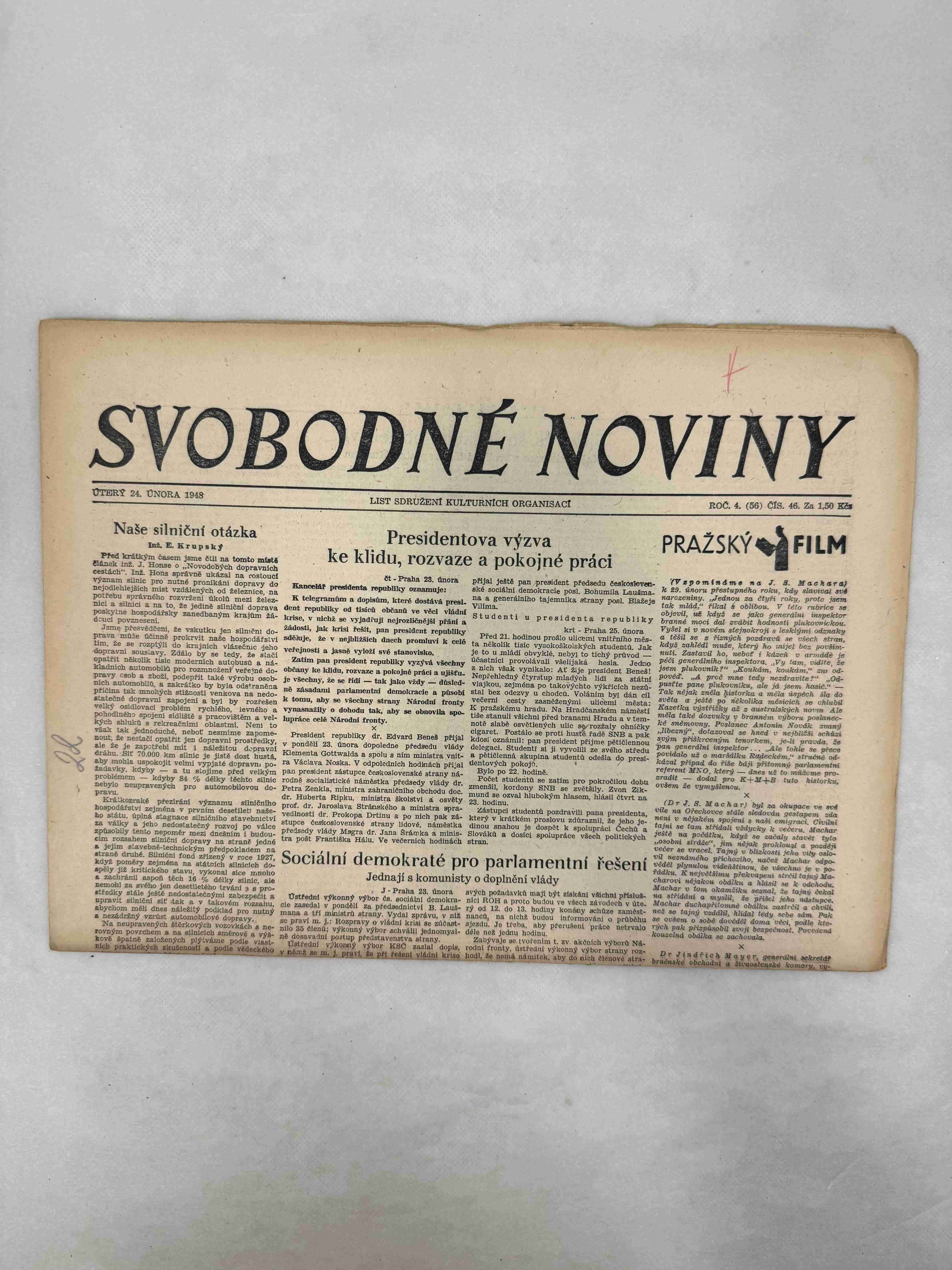 Originální dobový výtisk novin, nejedná se o reprodukci!