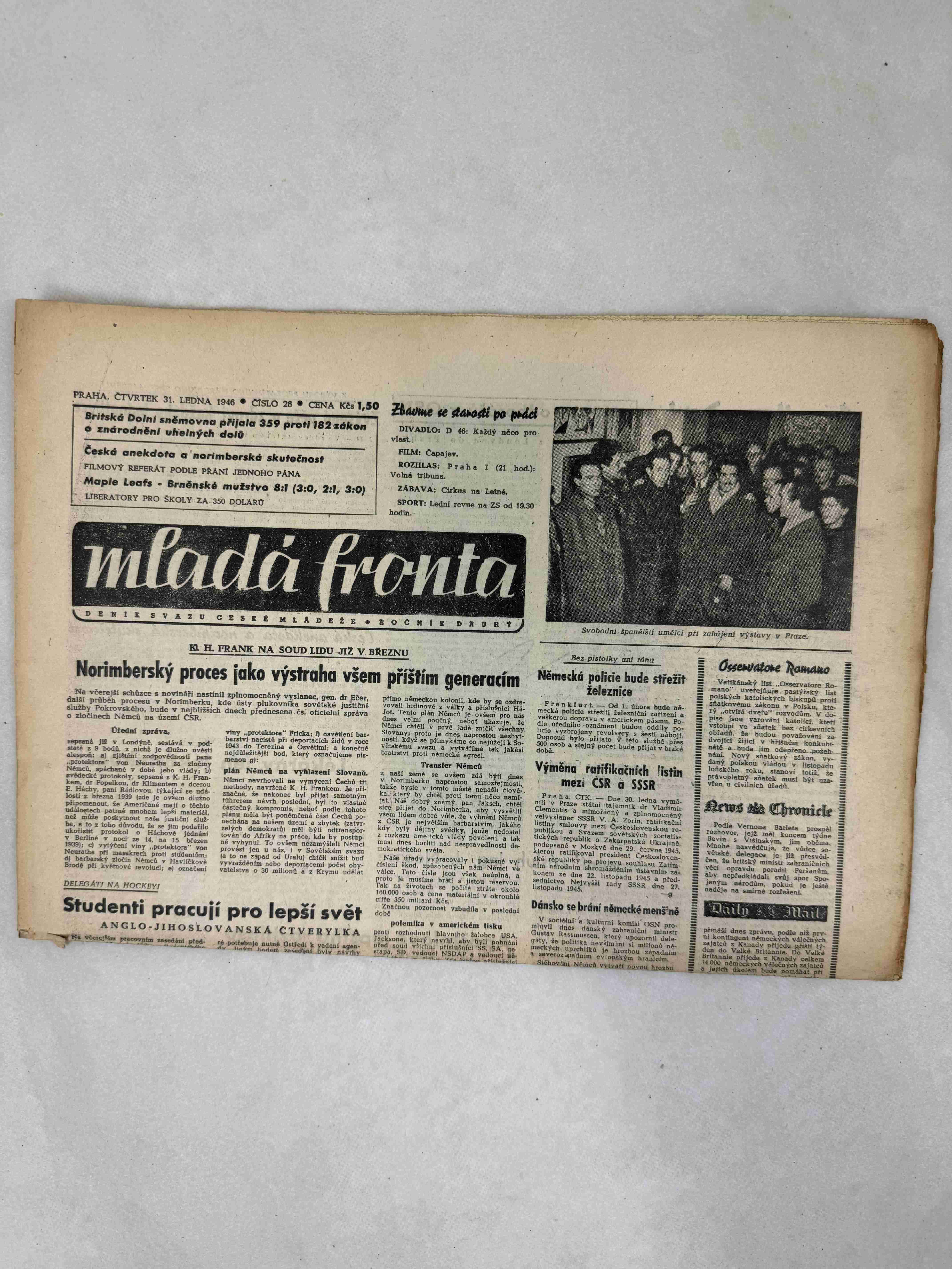 Originální dobový výtisk novin, nejedná se o reprodukci!