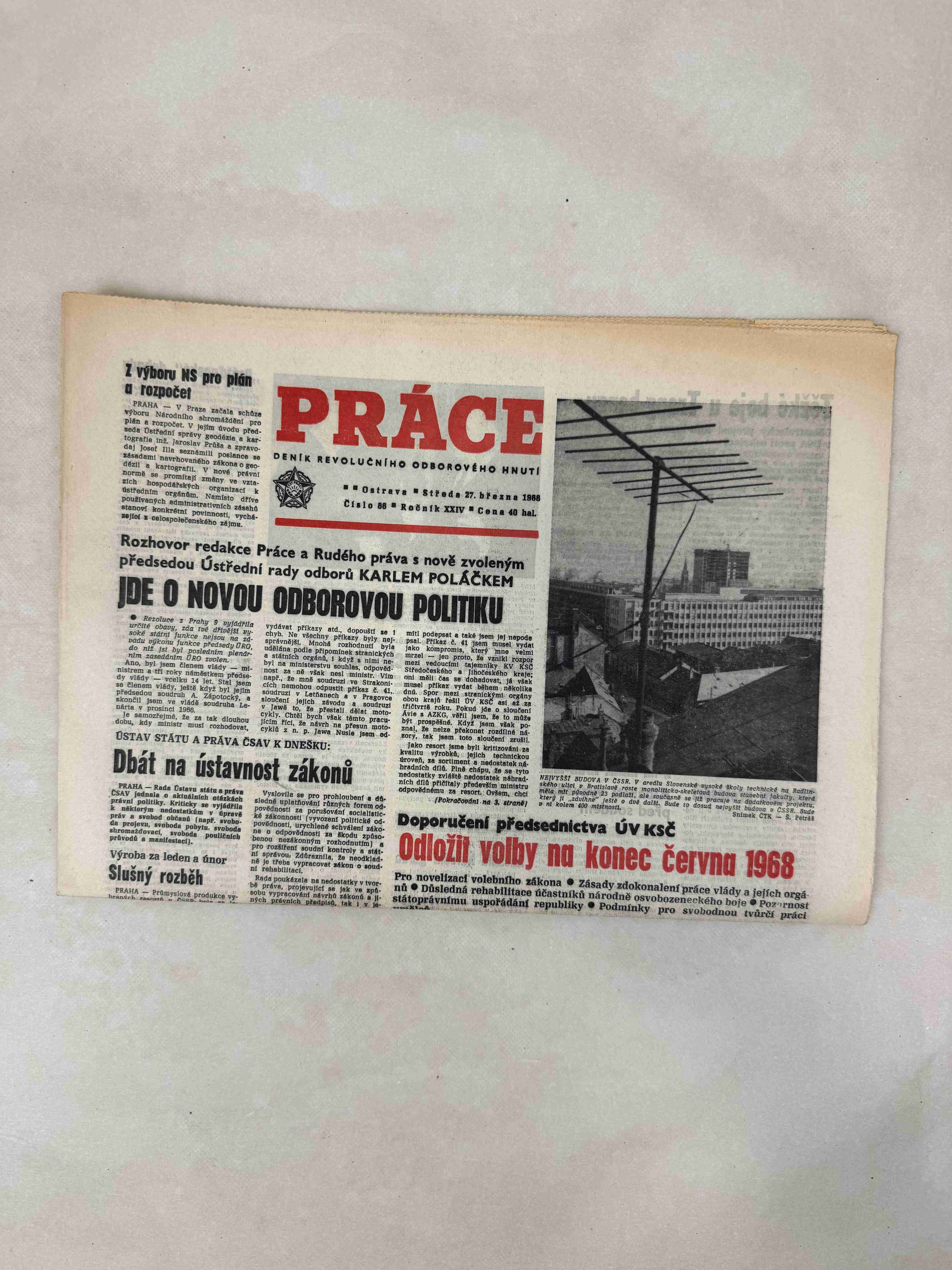 Originální dobový výtisk novin, nejedná se o reprodukci!