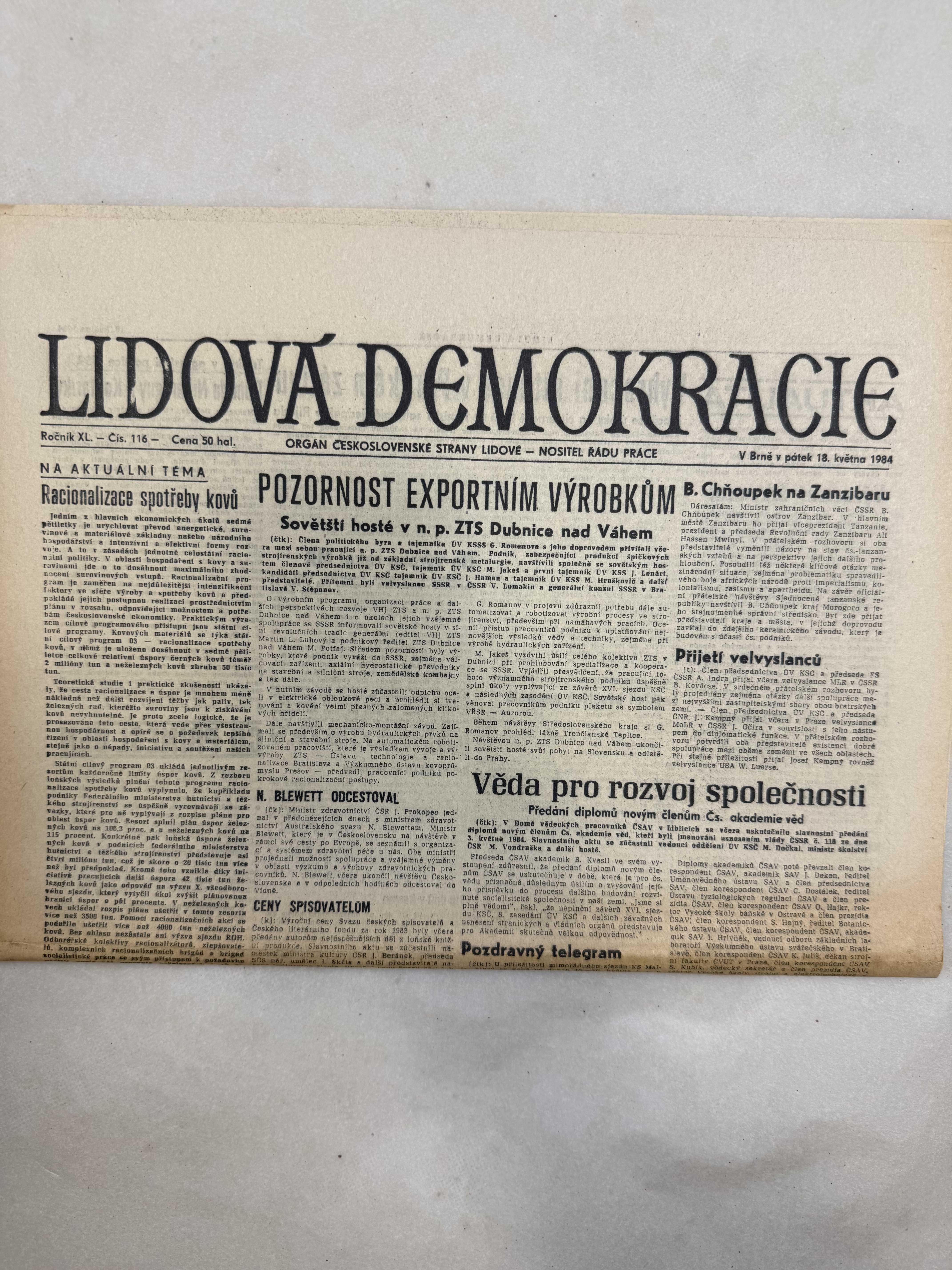 Lidová demokracie 18.5.1984