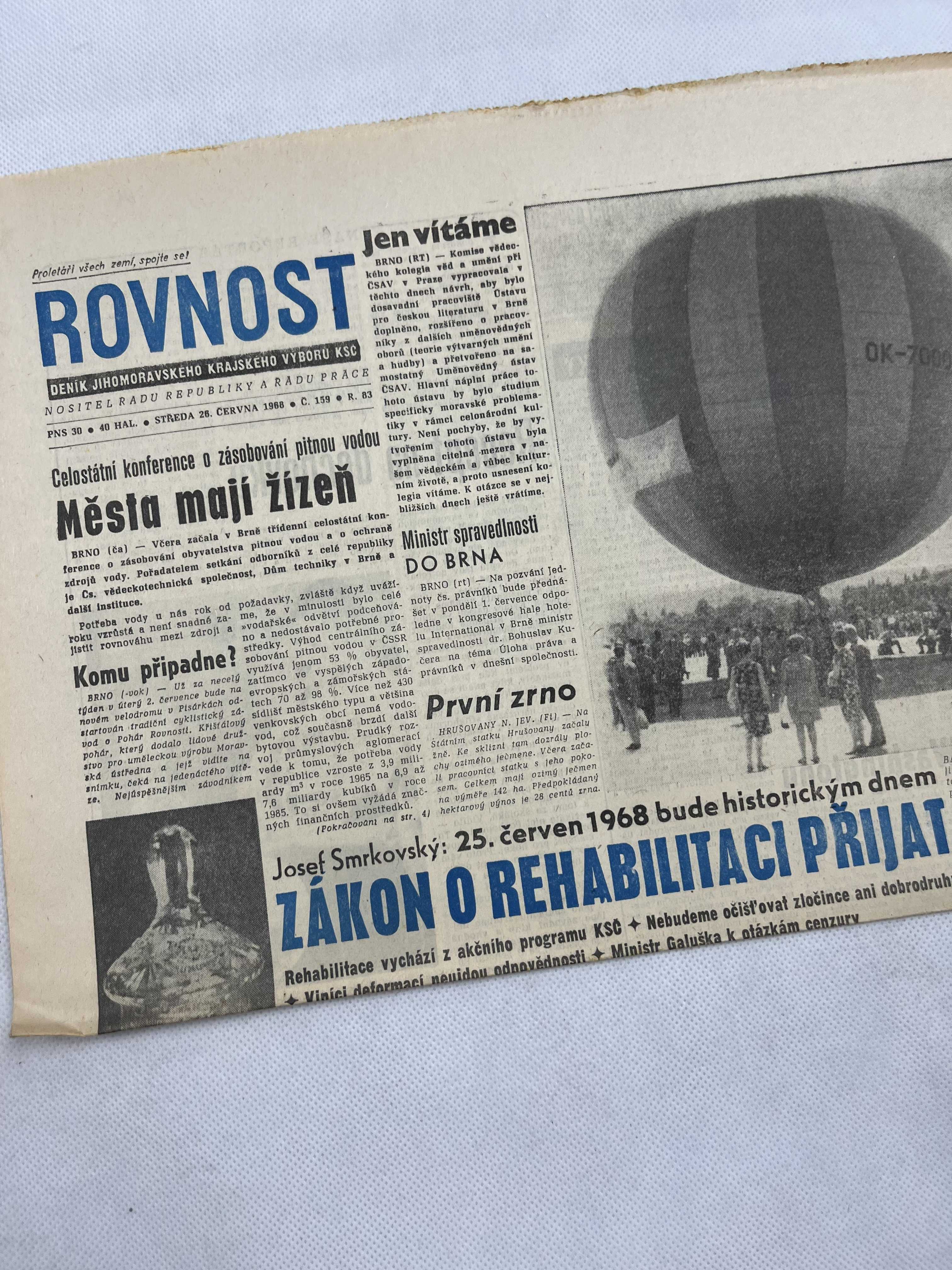 Noviny Rovnost 26.6.1968