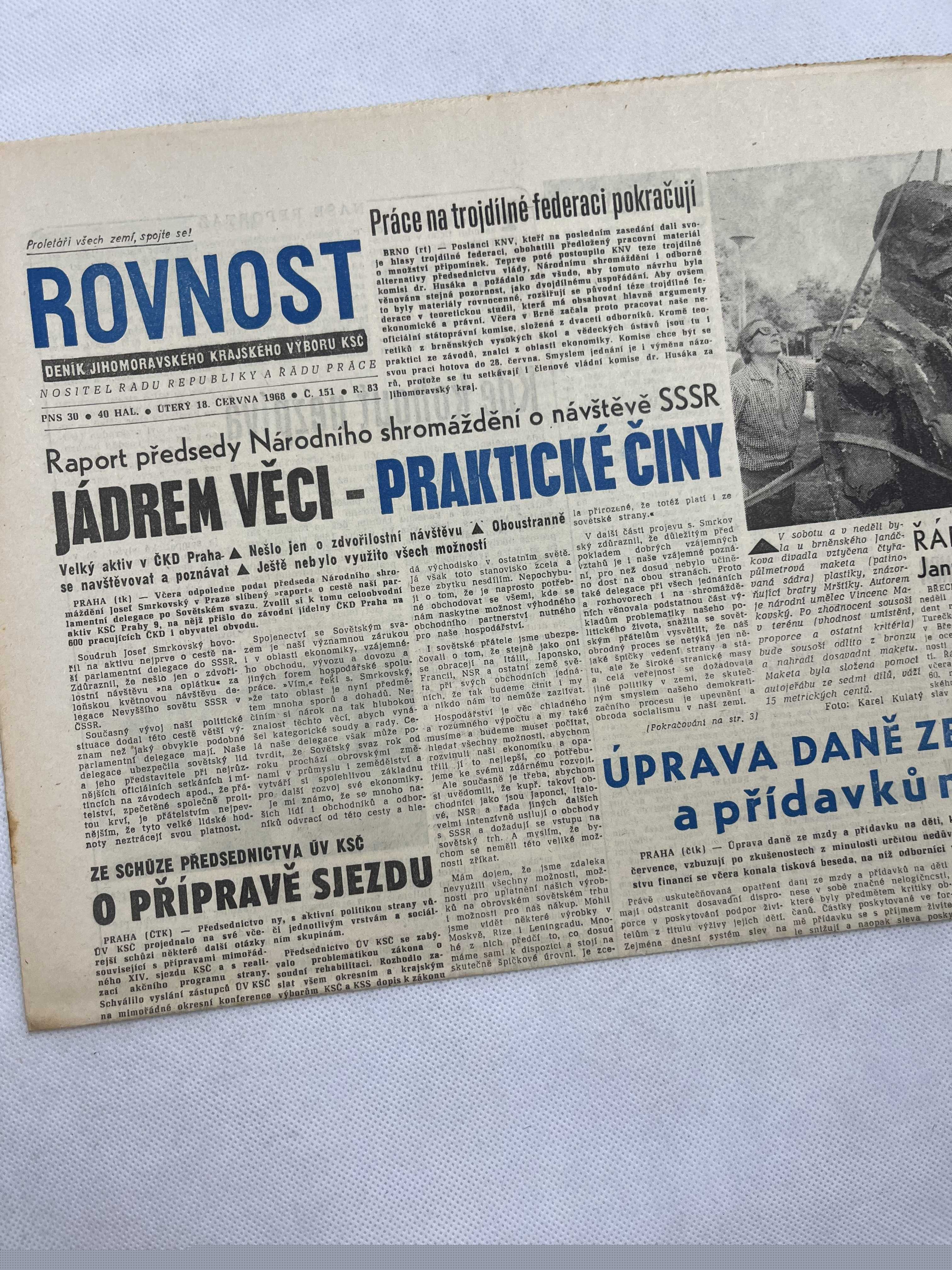Noviny Rovnost 18.6.1968