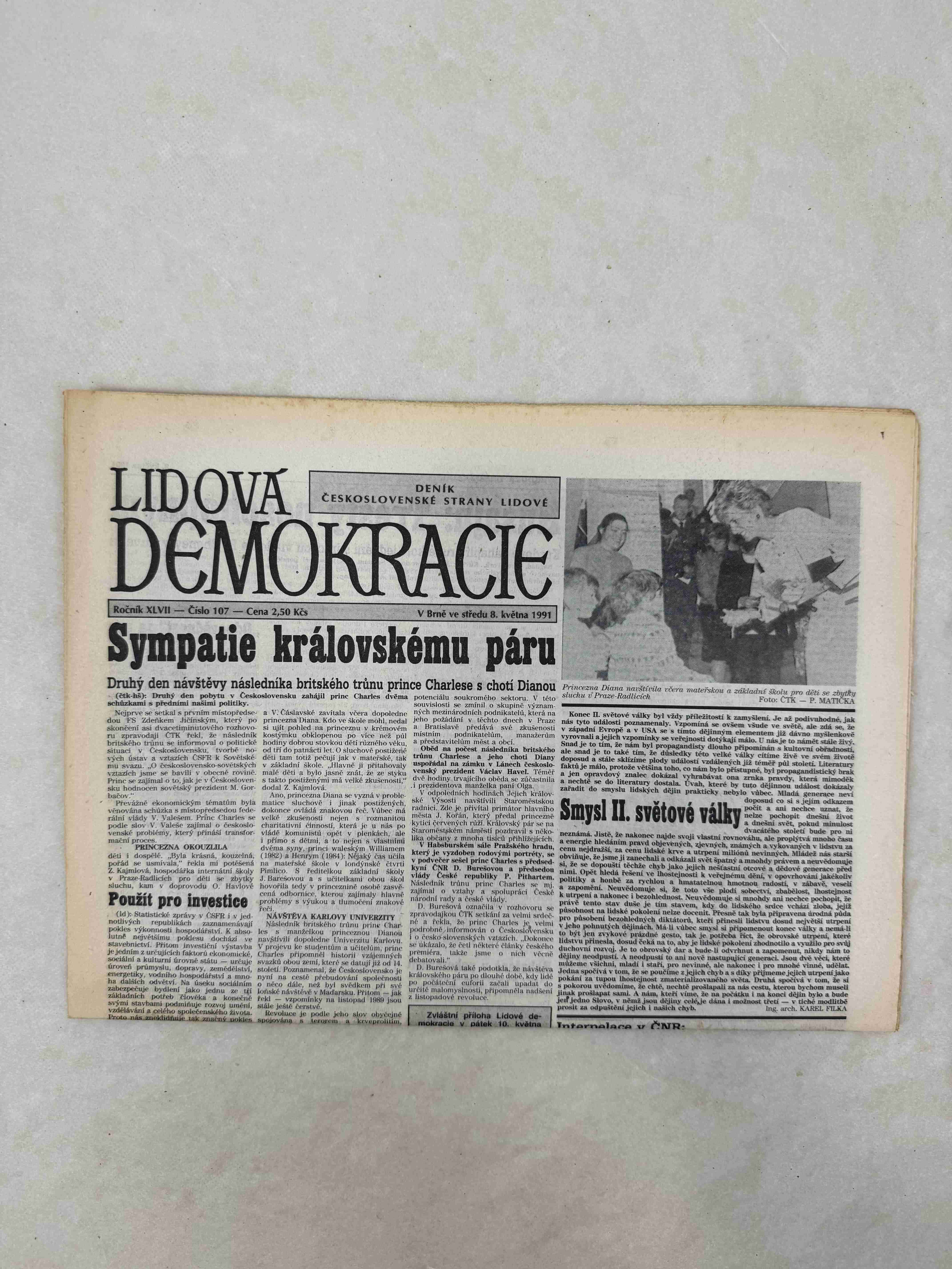 Originální dobový výtisk novin, nejedná se o reprodukci!