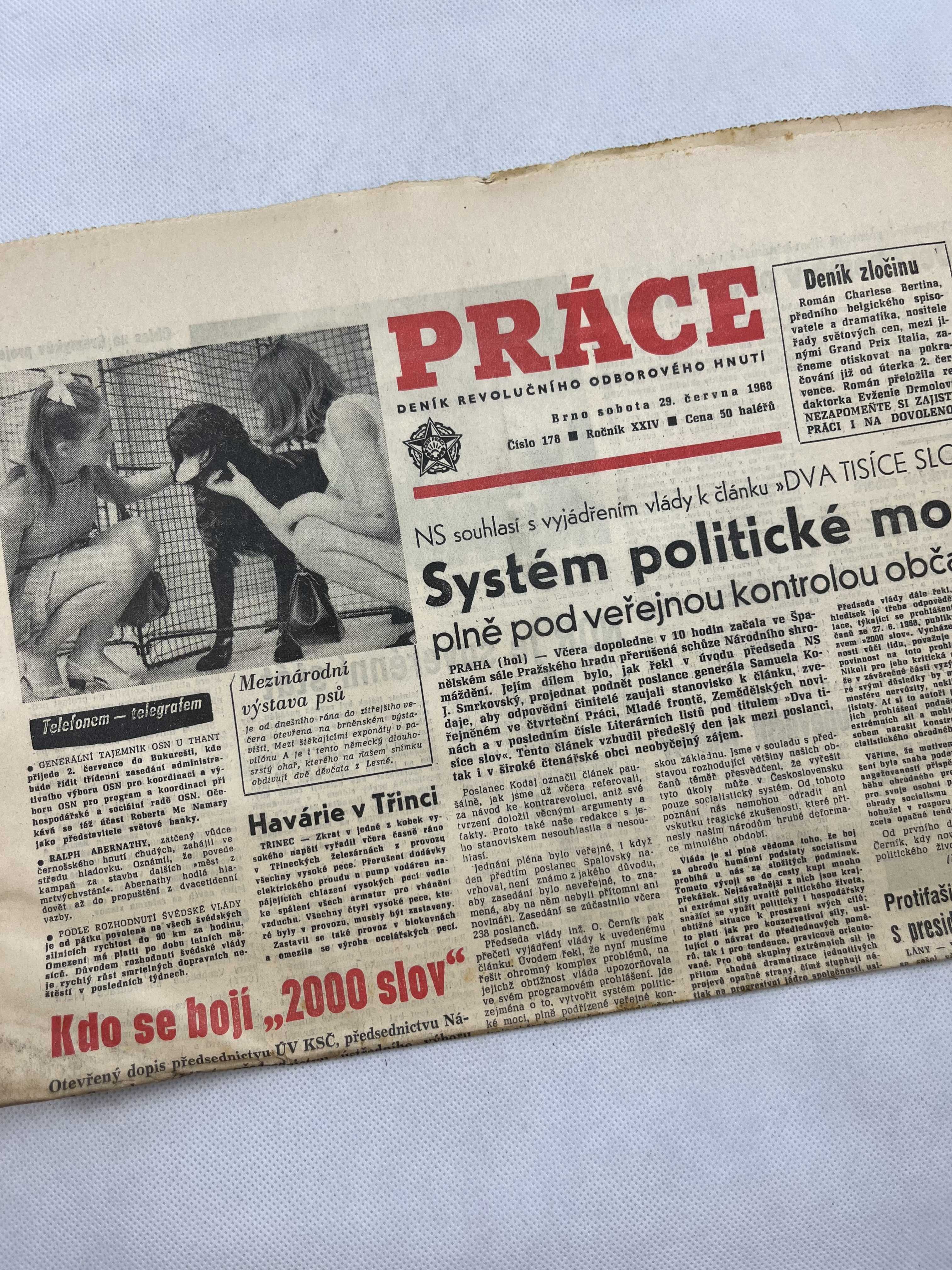 Noviny Práce 29.6.1968