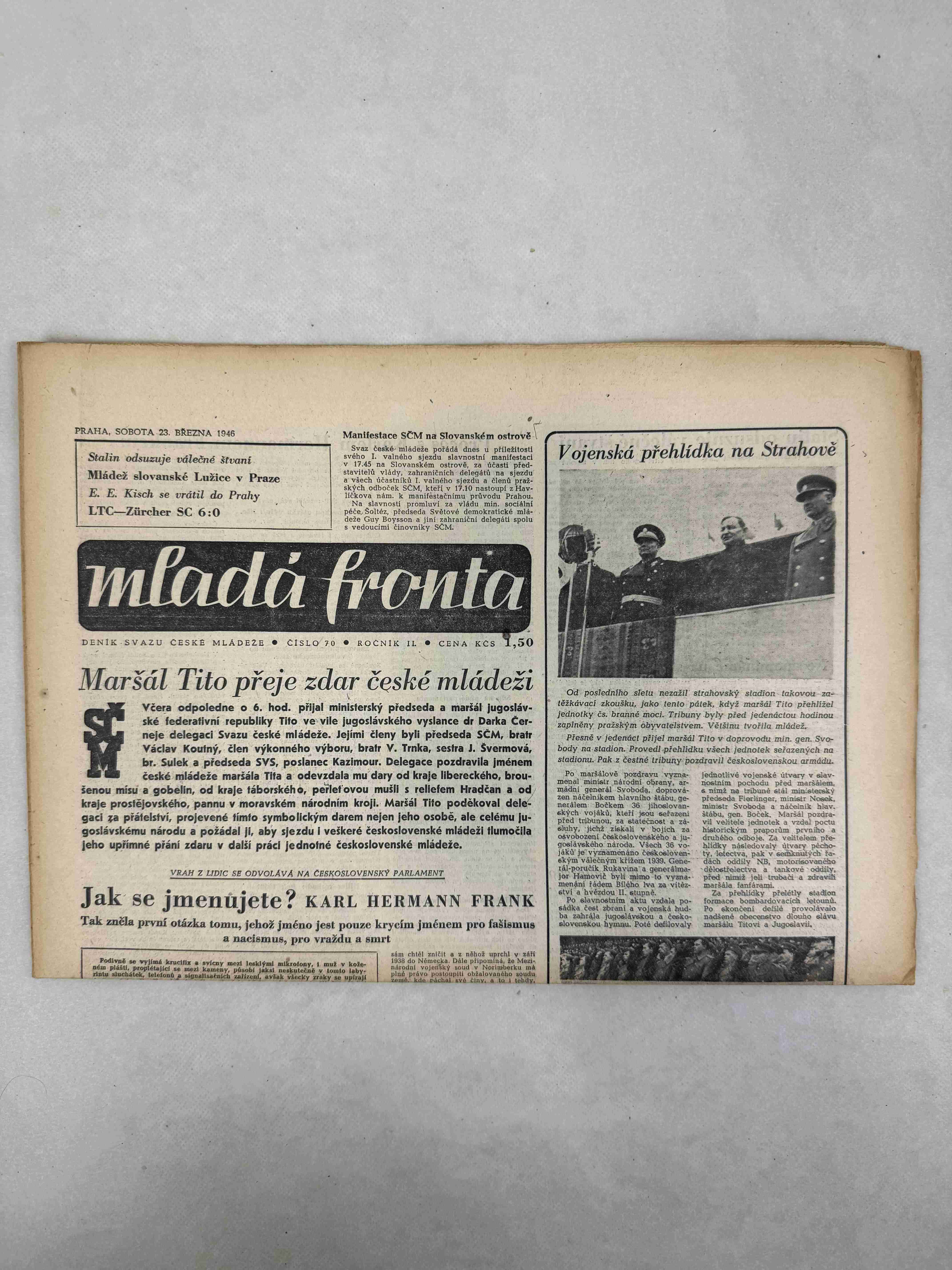 Originální dobový výtisk novin, nejedná se o reprodukci!