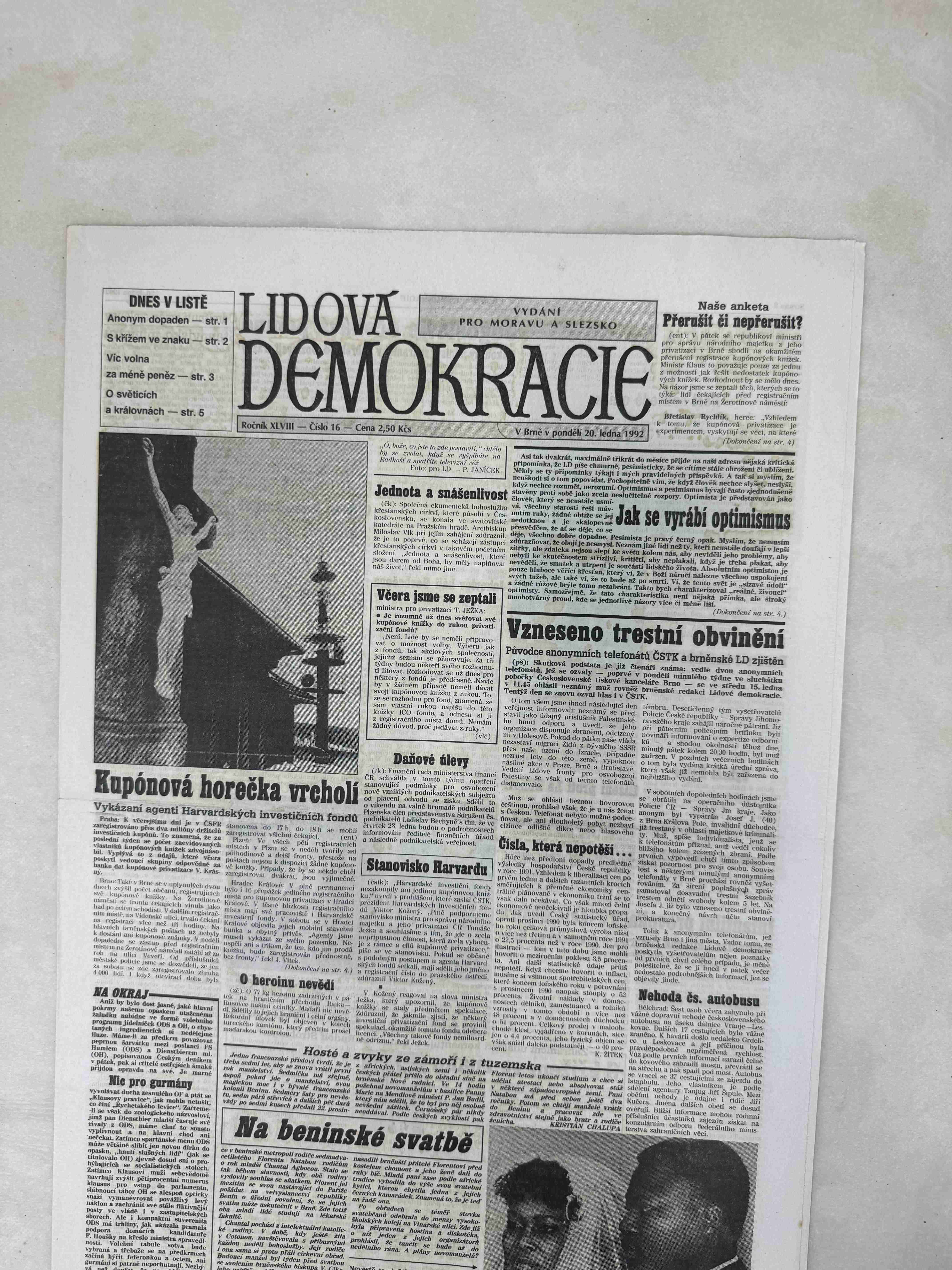 Originální dobový výtisk novin, nejedná se o reprodukci!