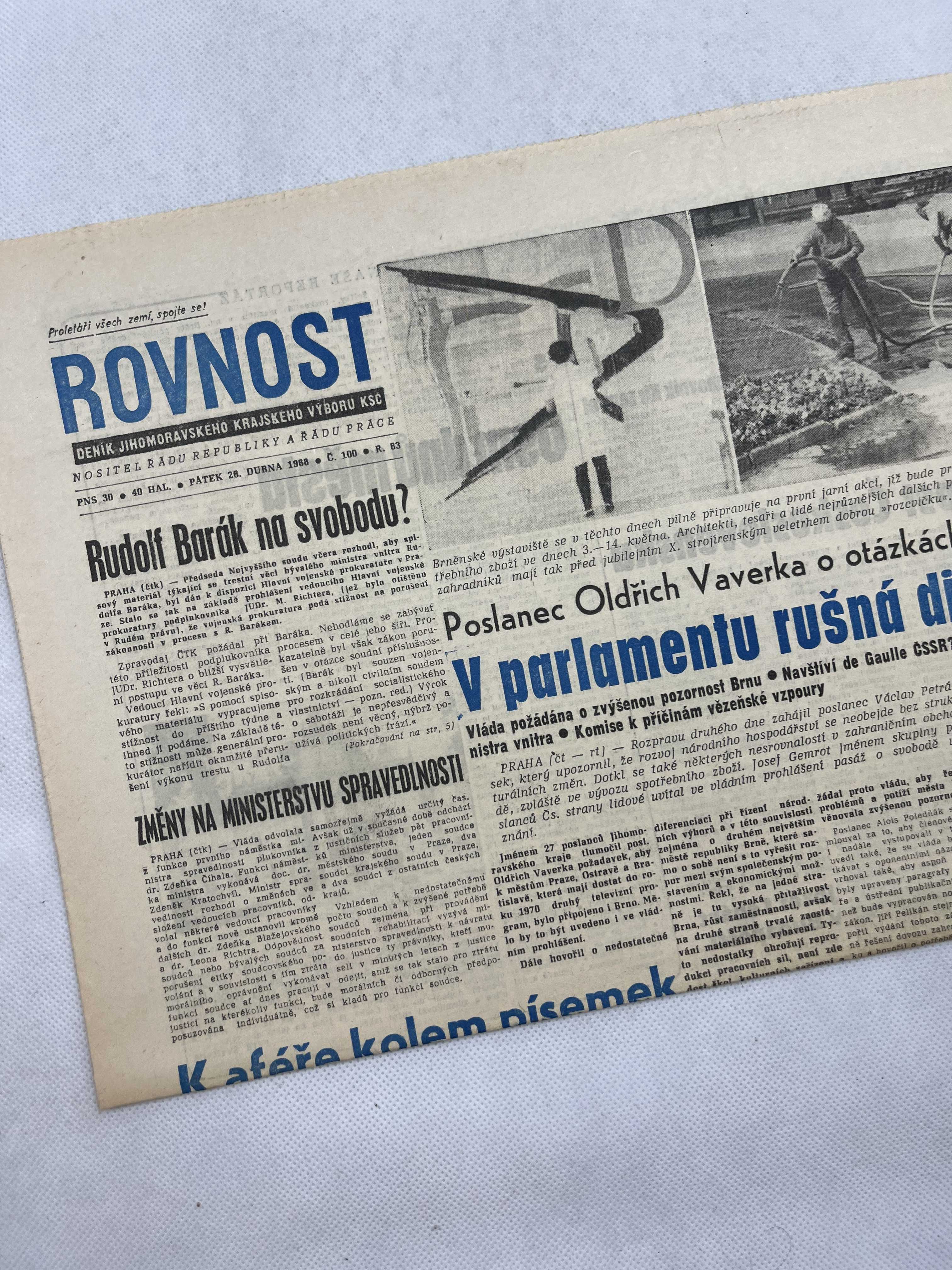 Noviny Rovnost 26.4.1968