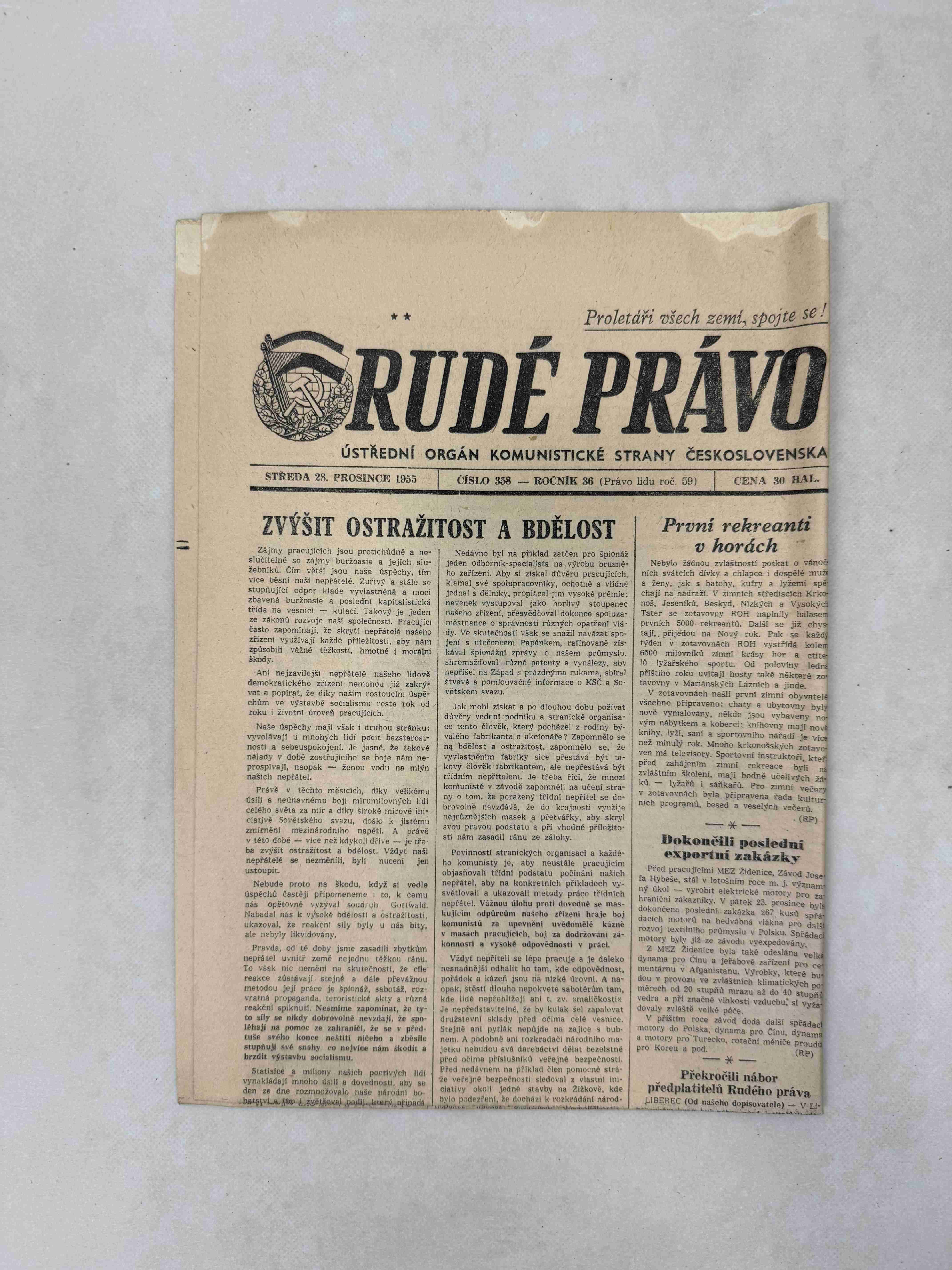 Originální dobový výtisk novin, nejedná se o reprodukci!