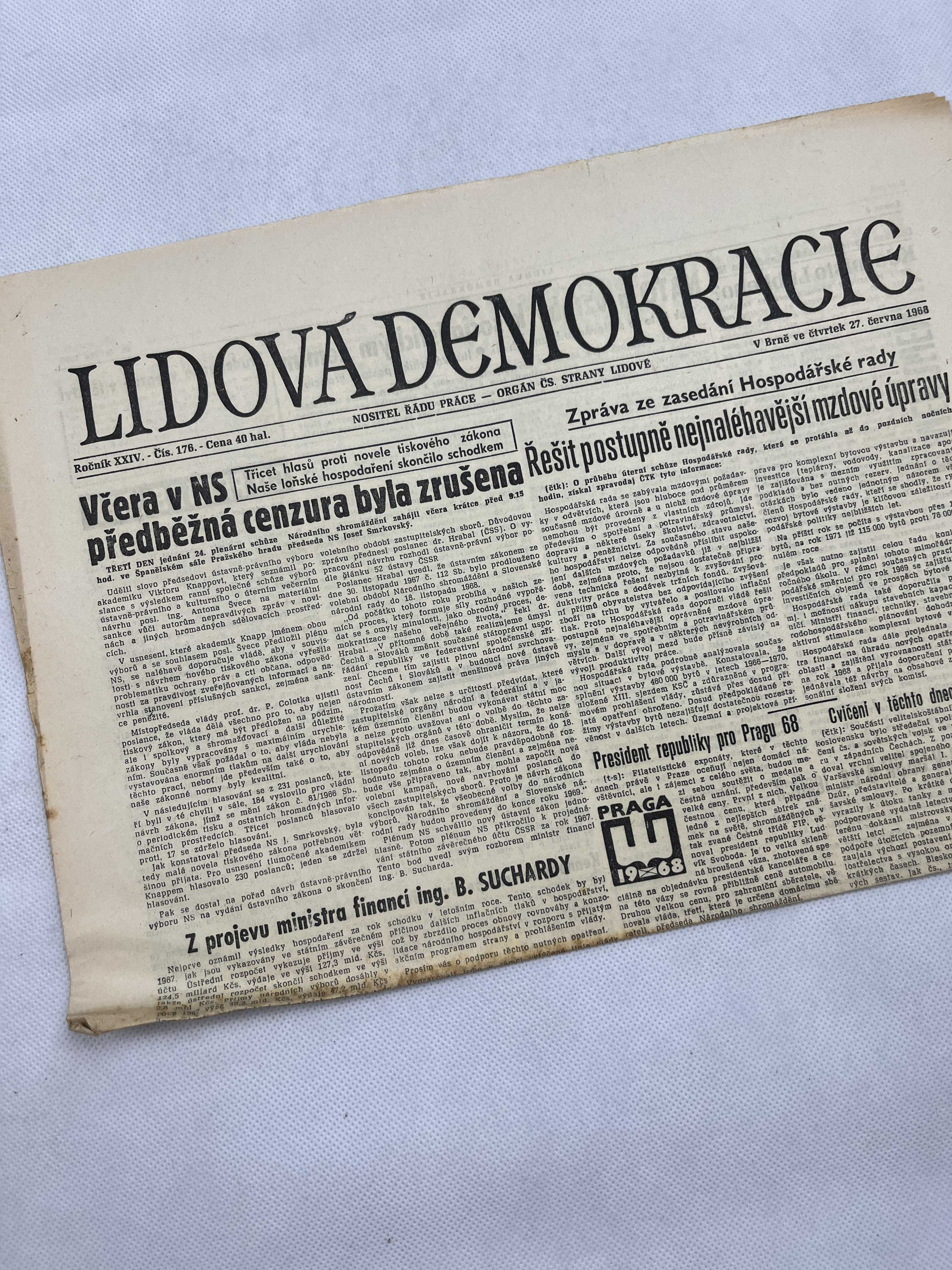 Noviny lidová demokracie 27.6.1968
