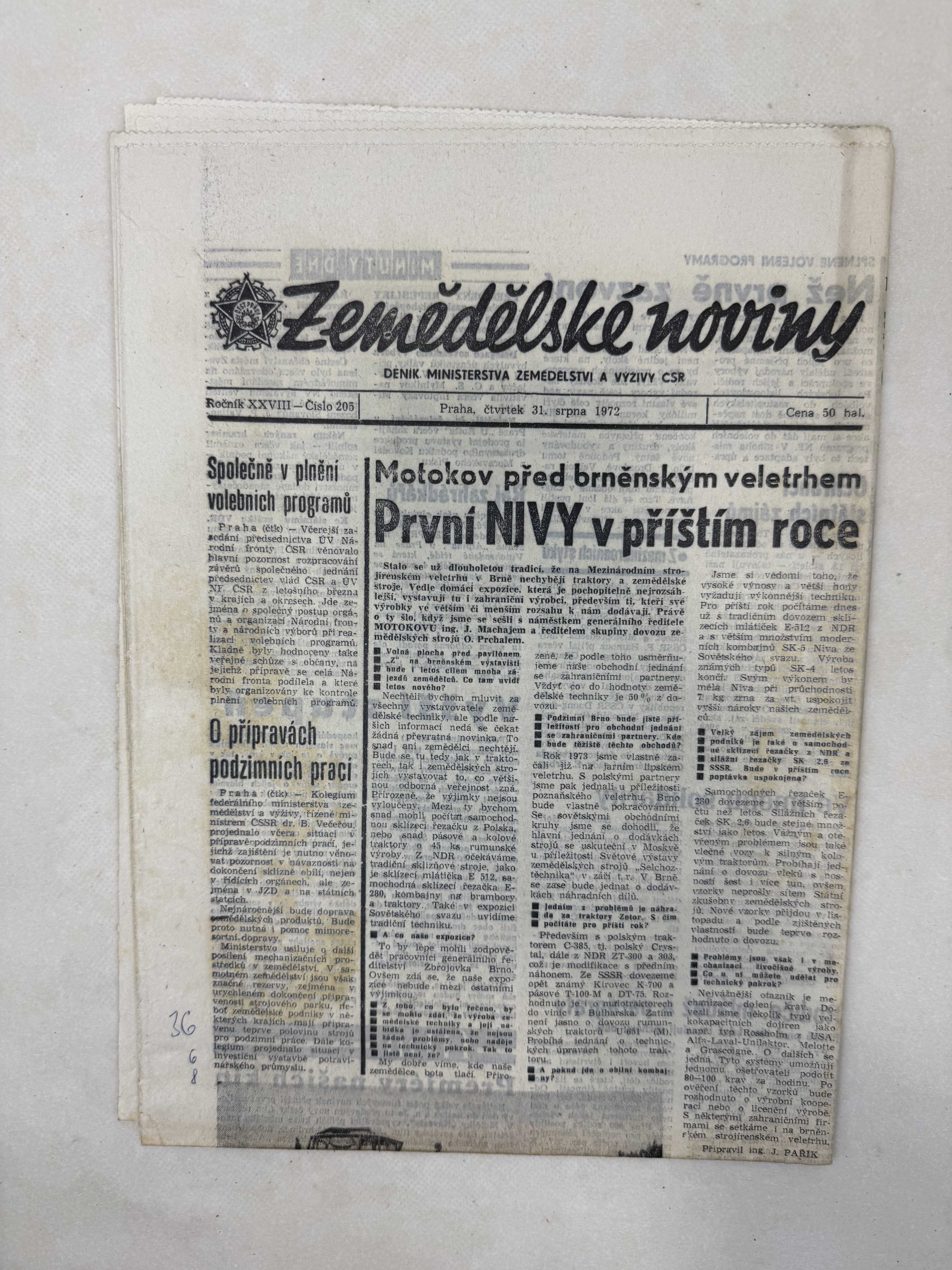Zemědělské noviny 31.8.1972