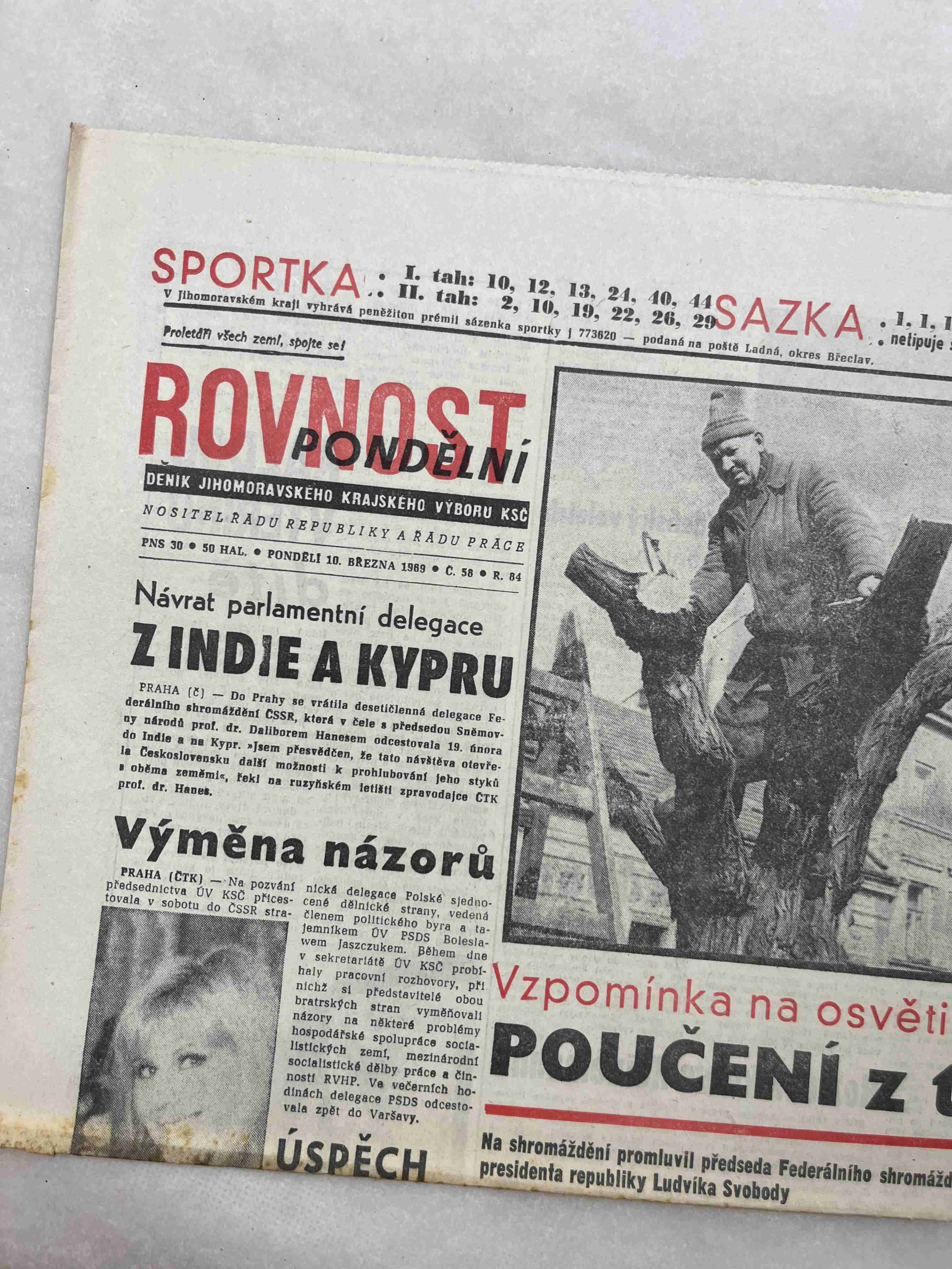 Originální dobový výtisk novin, nejedná se o reprodukci!