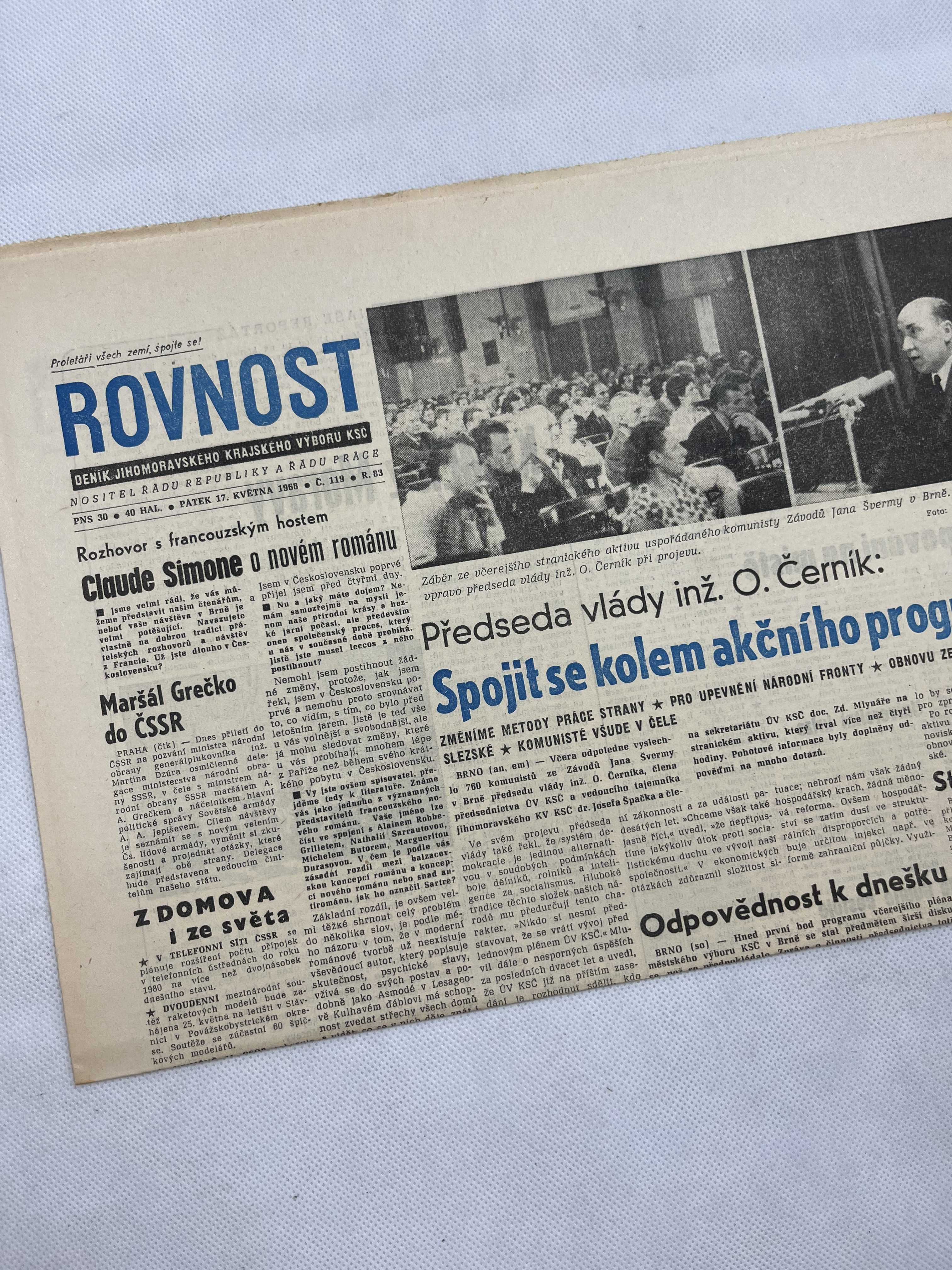 Noviny Rovnost 17.5.1968