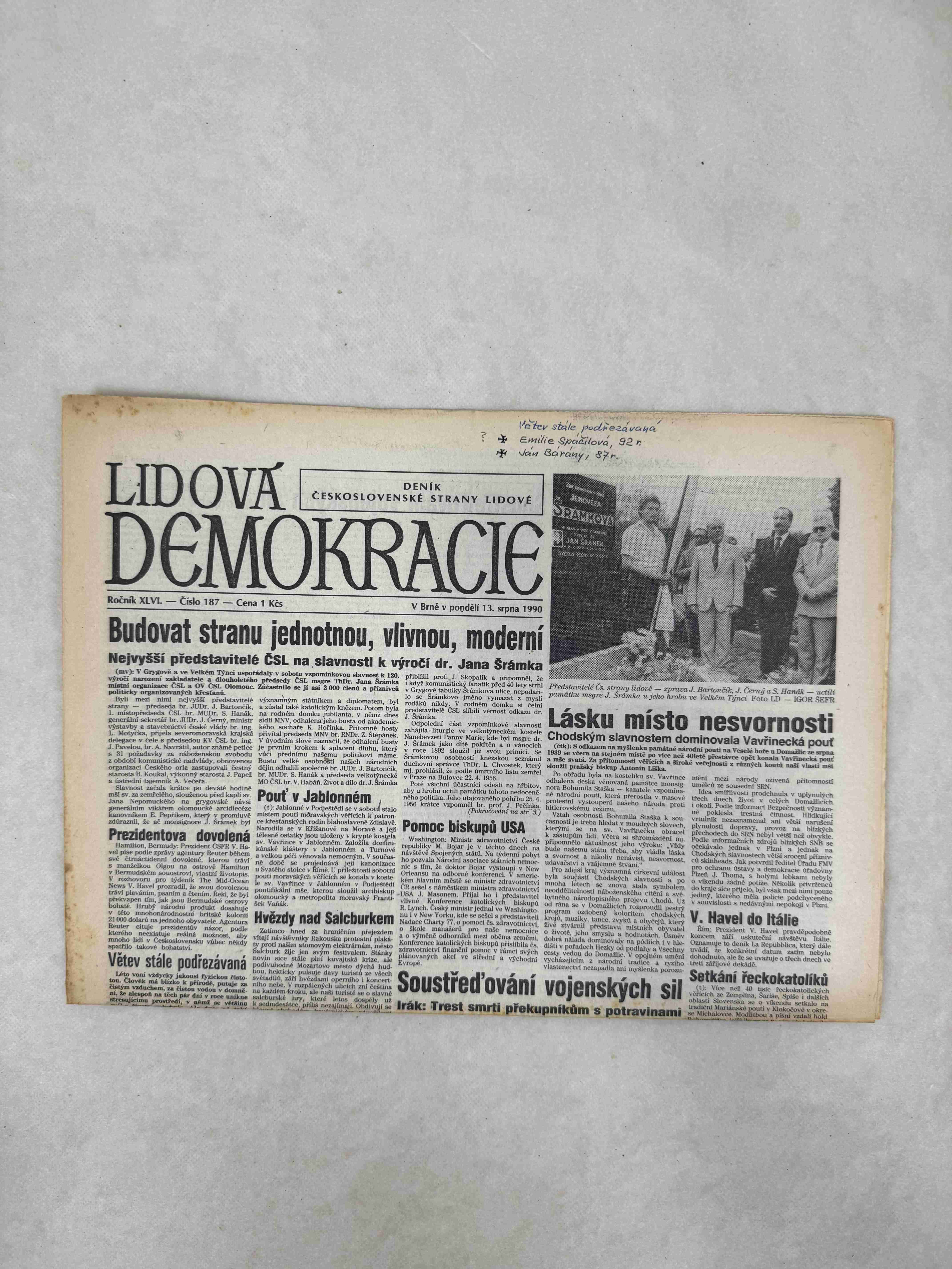 Originální dobový výtisk novin, nejedná se o reprodukci!