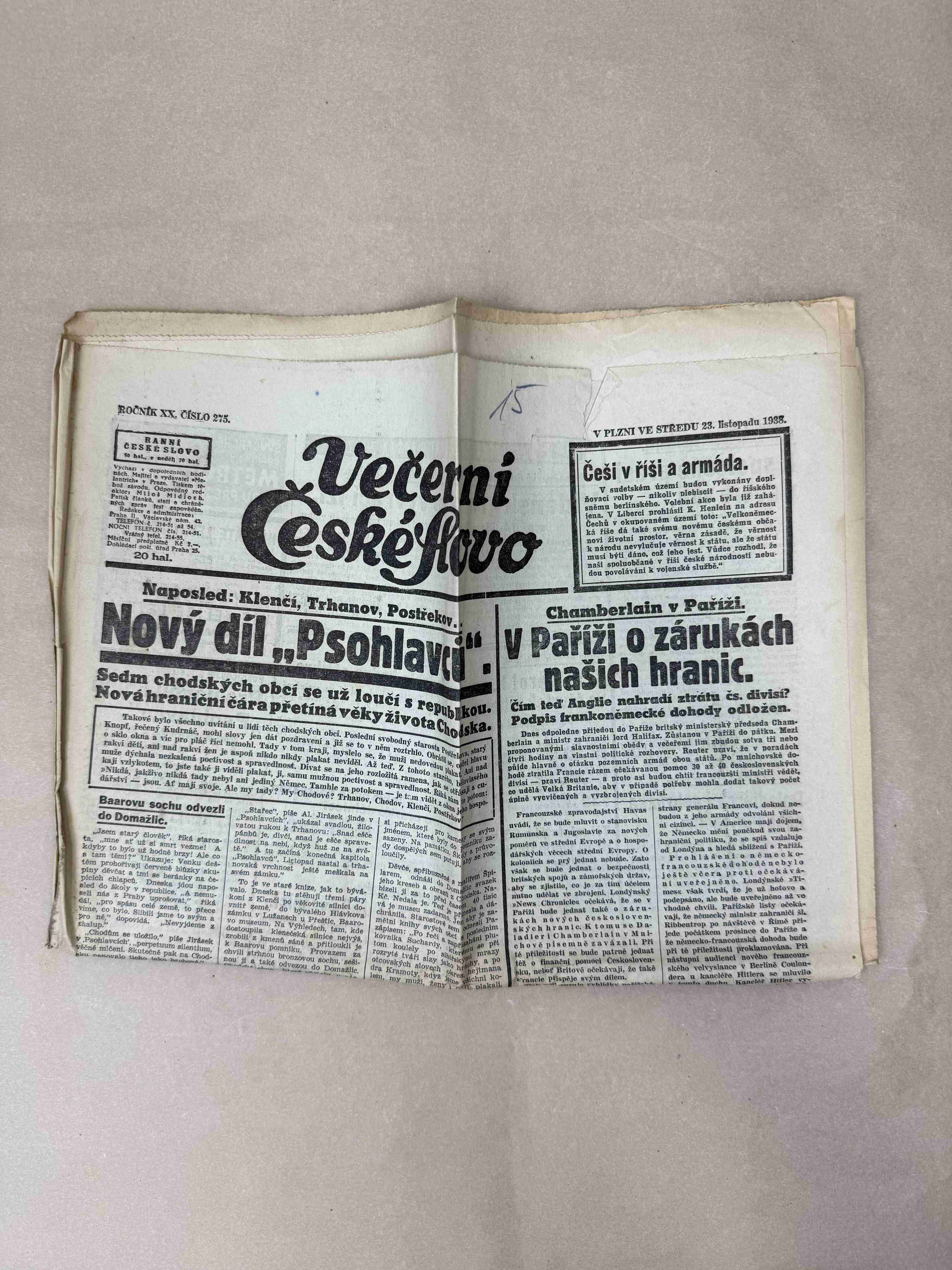 Originální dobový výtisk novin, nejedná se o reprodukci!