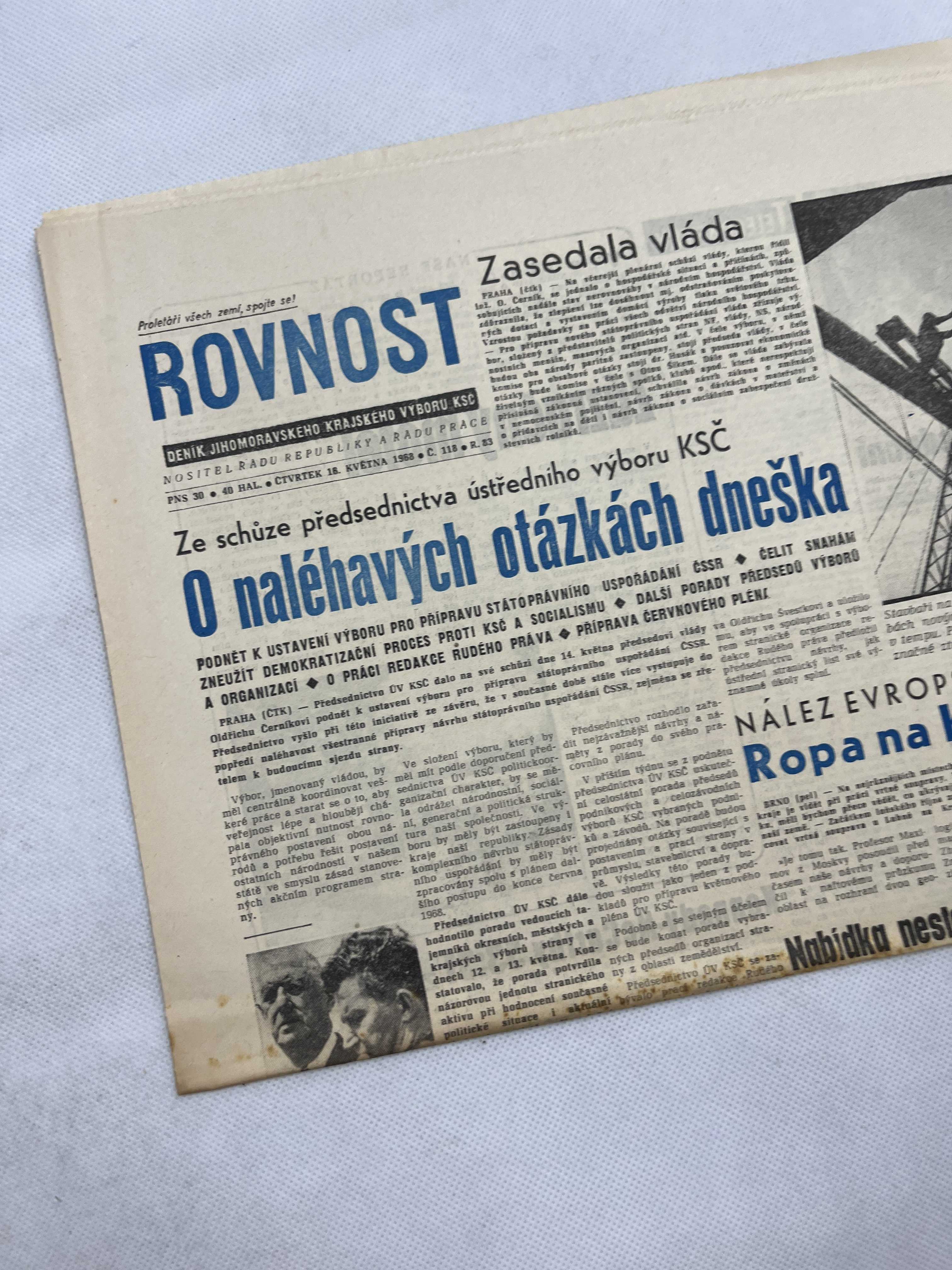 Noviny Rovnost 16.5.1968