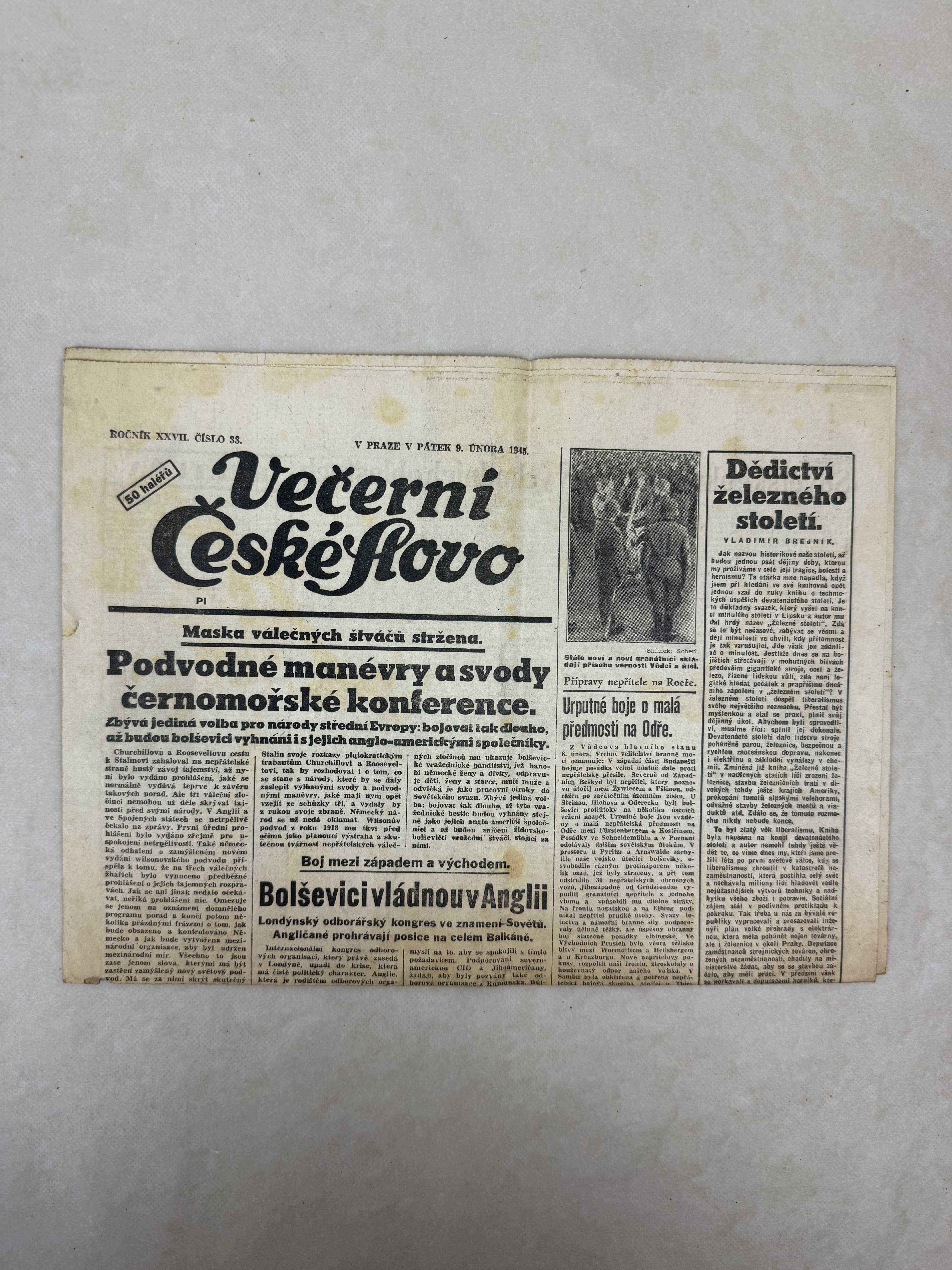 Večerní České slovo 9.2.1945