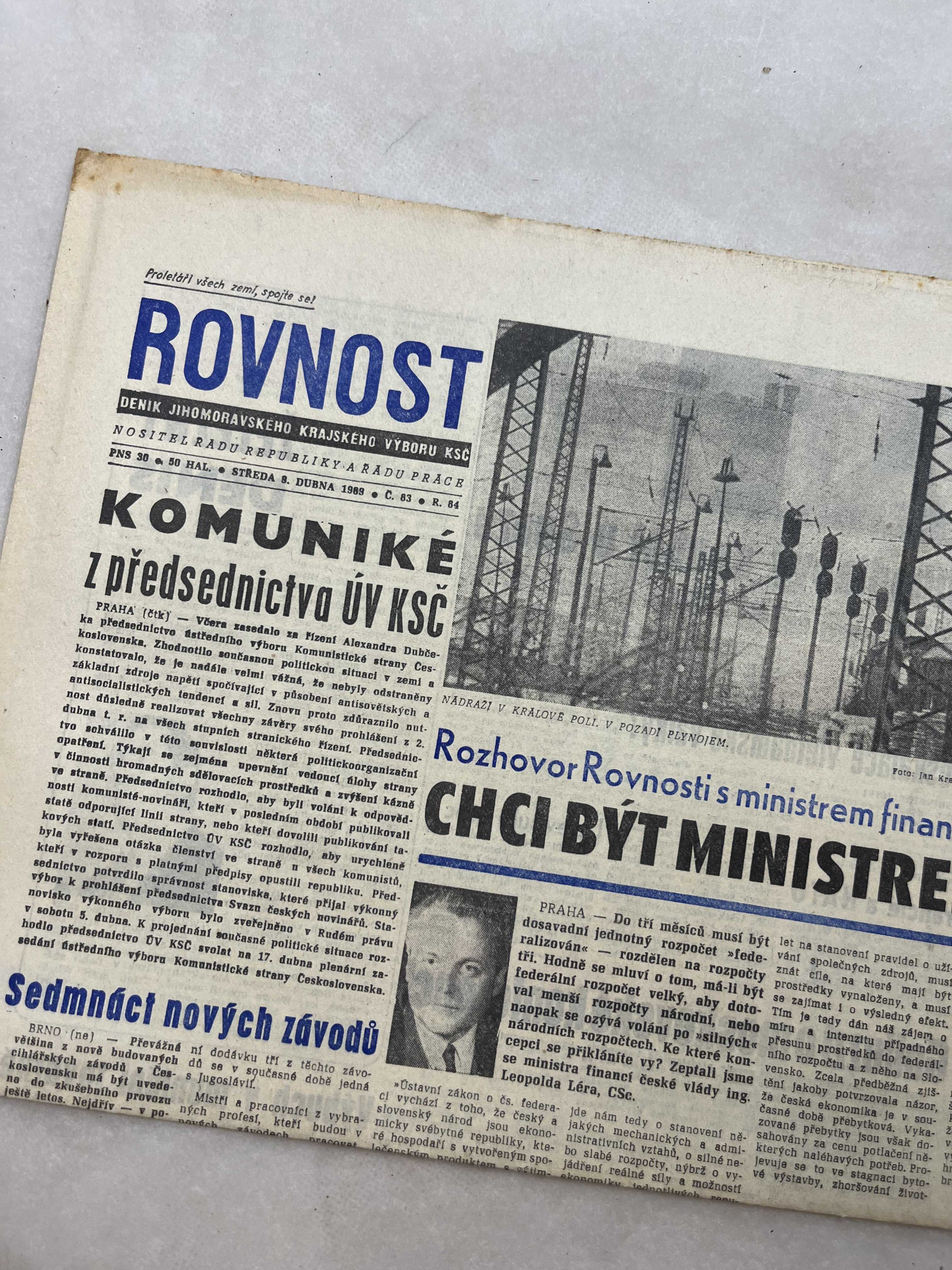 Noviny Rovnost 9.4.1969