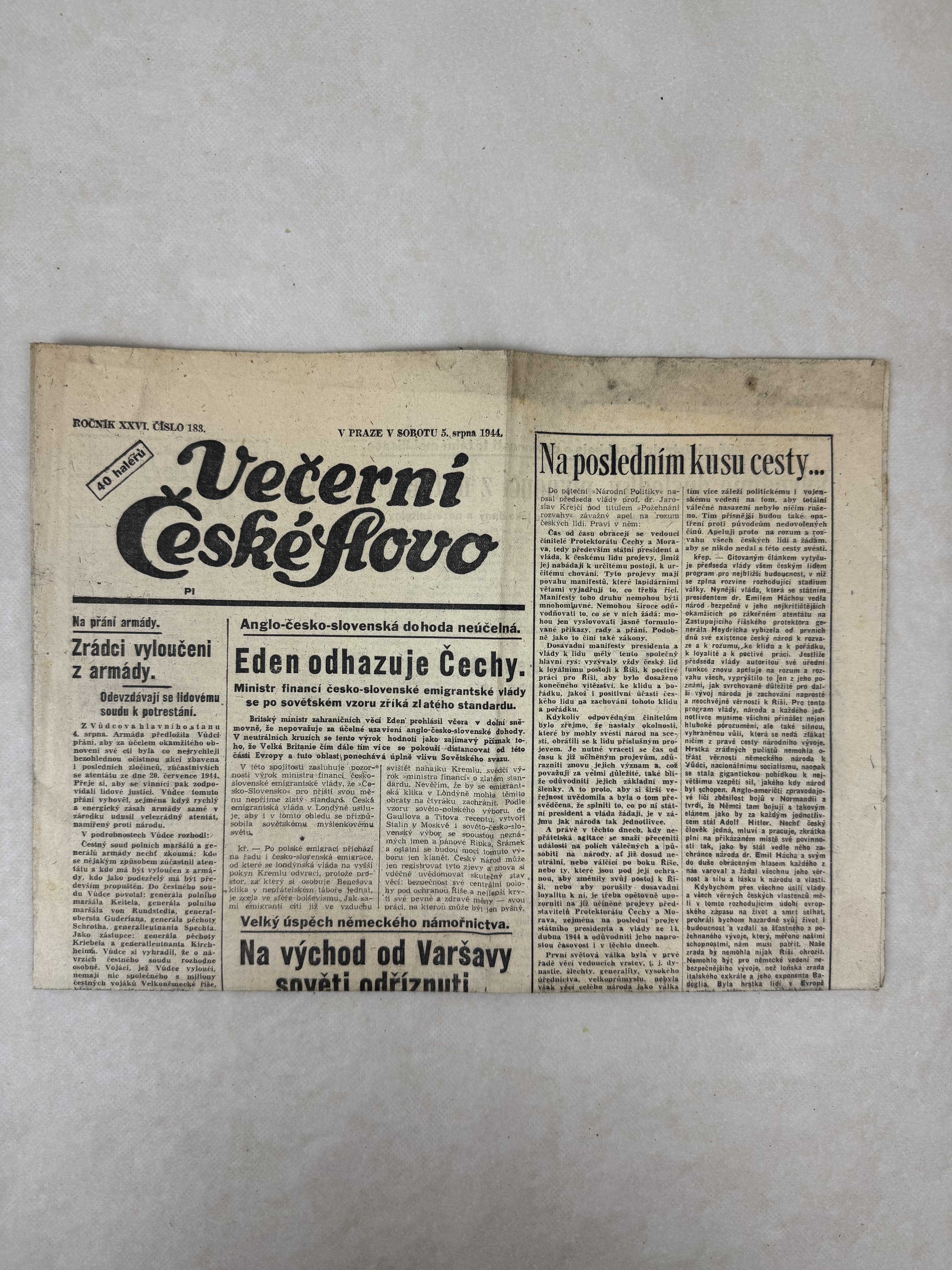 Večerní České slovo 5.8.1944