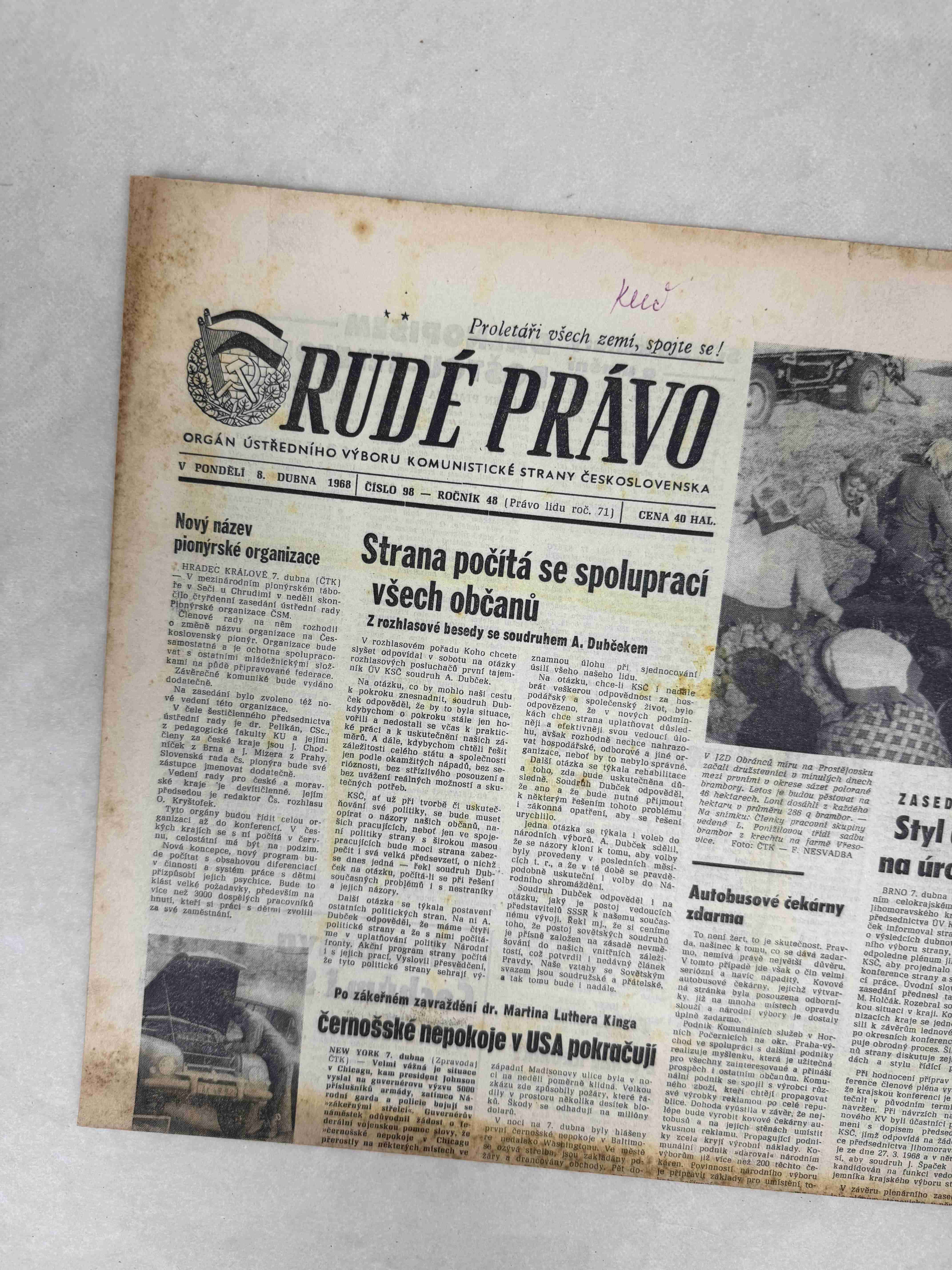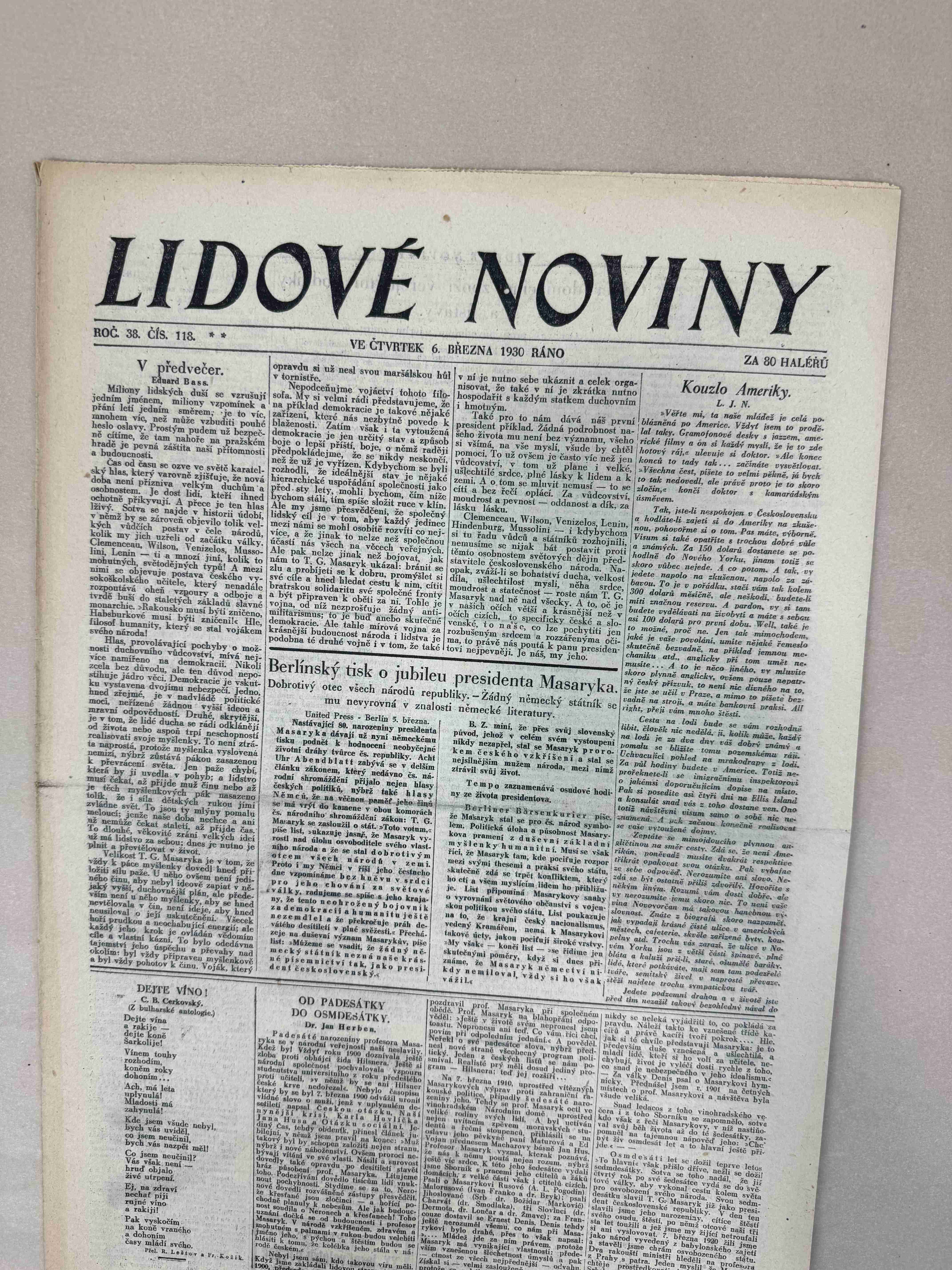Originální dobový výtisk novin, nejedná se o reprodukci!